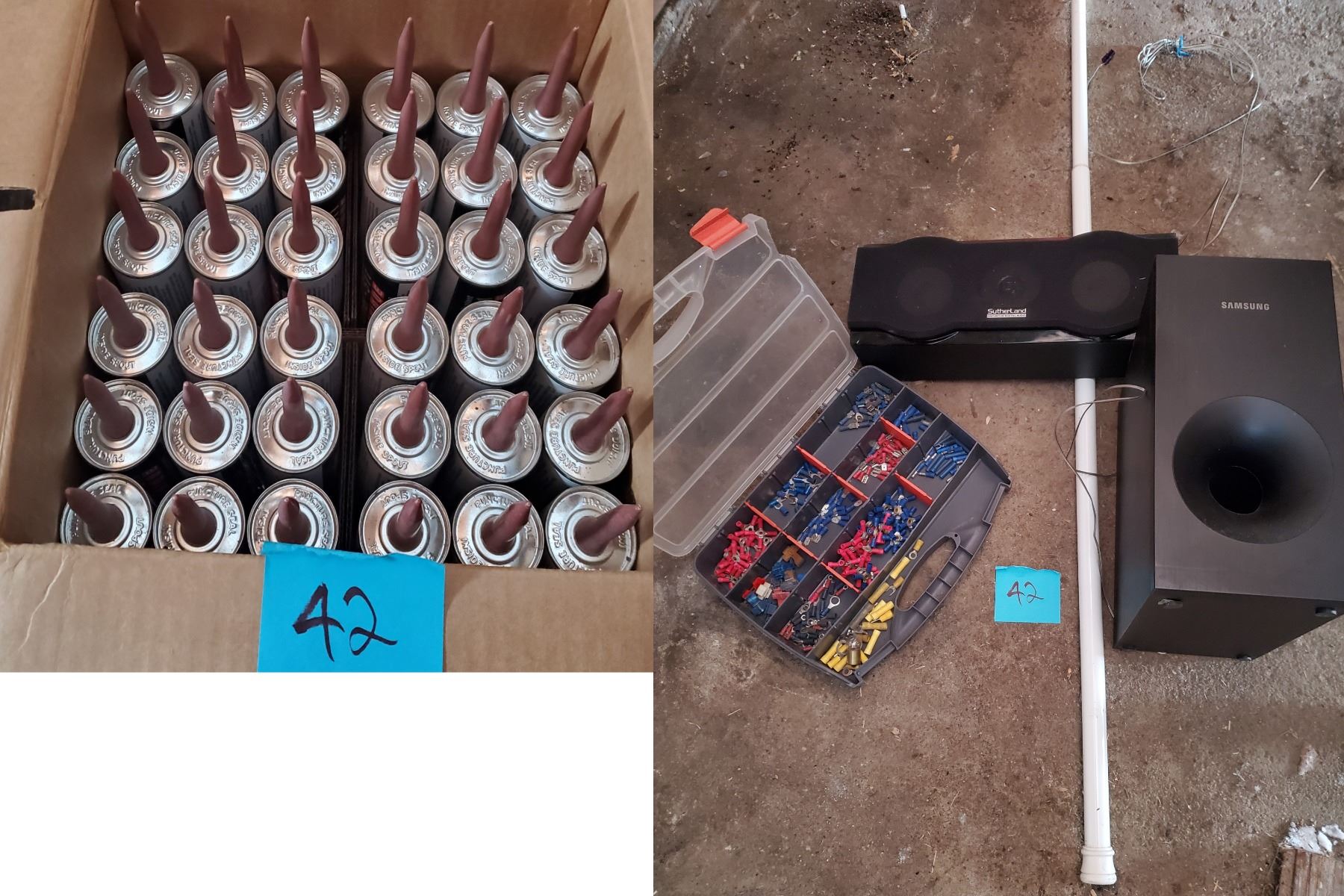 36 tubs of Sikahastomer-511 electrical connectors, 2 speakers, shower rod hardware