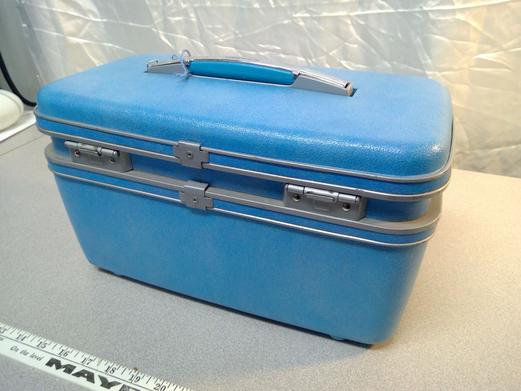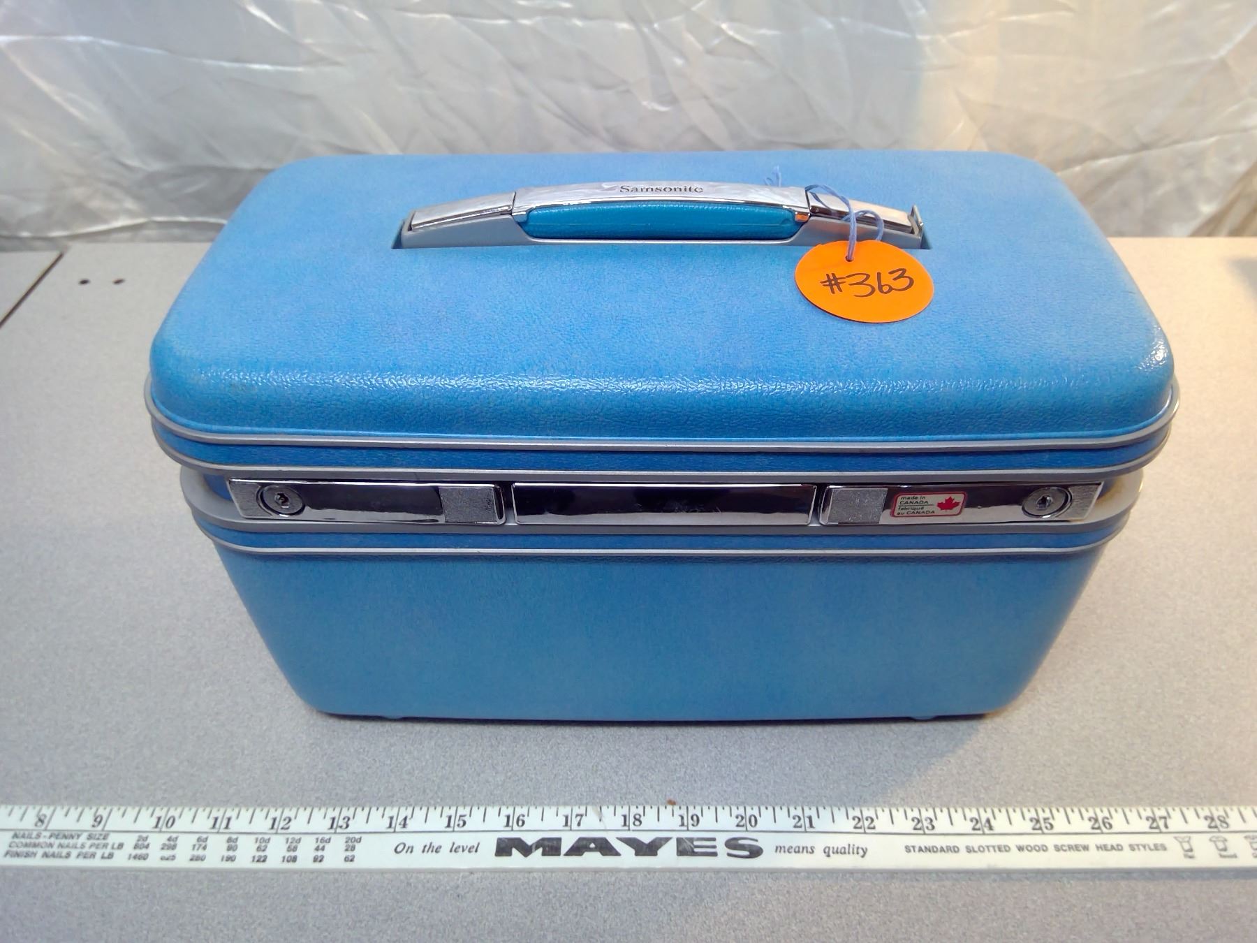 363. Blue Samsonite Travel case, very good condition, missing the cosmetic tray