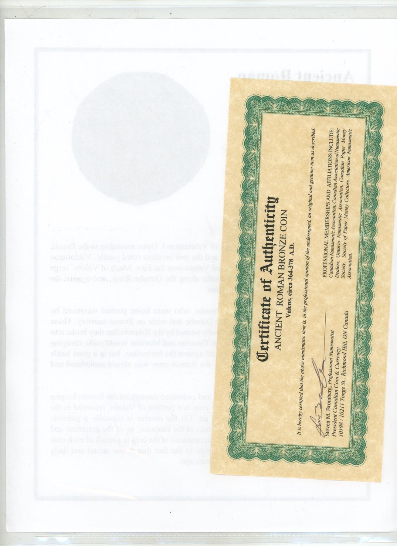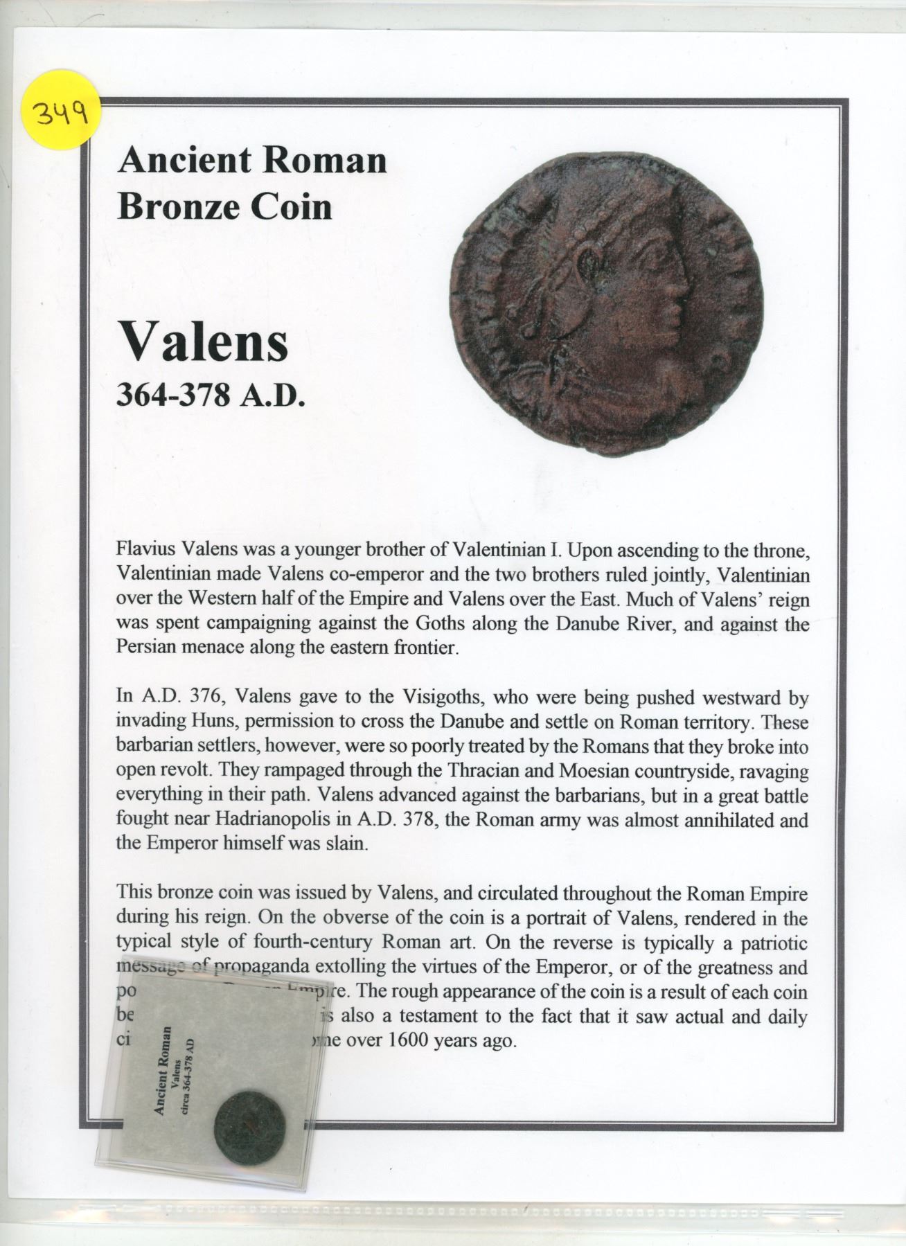364-378 A.D. Roman Bronze Valens Coin, COA