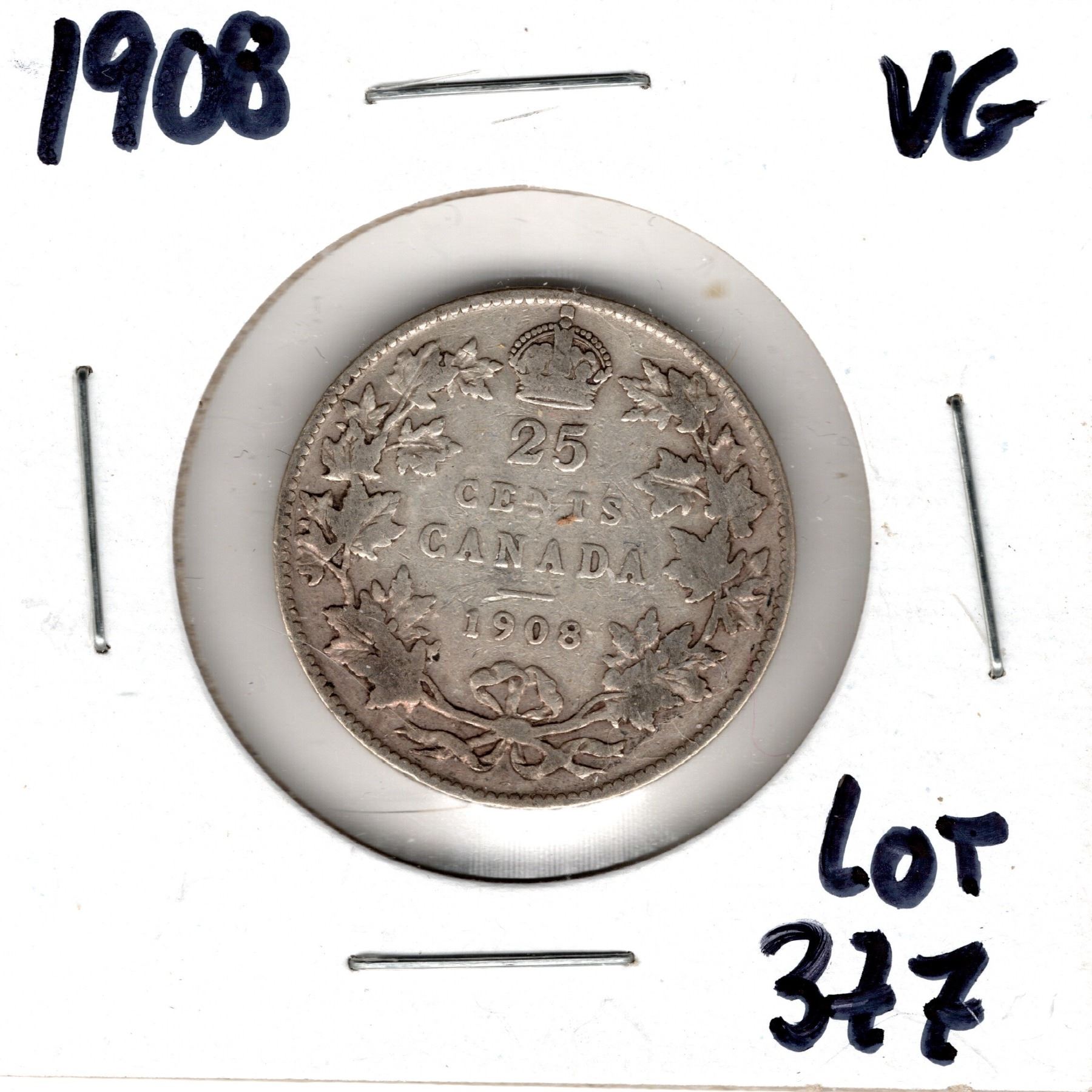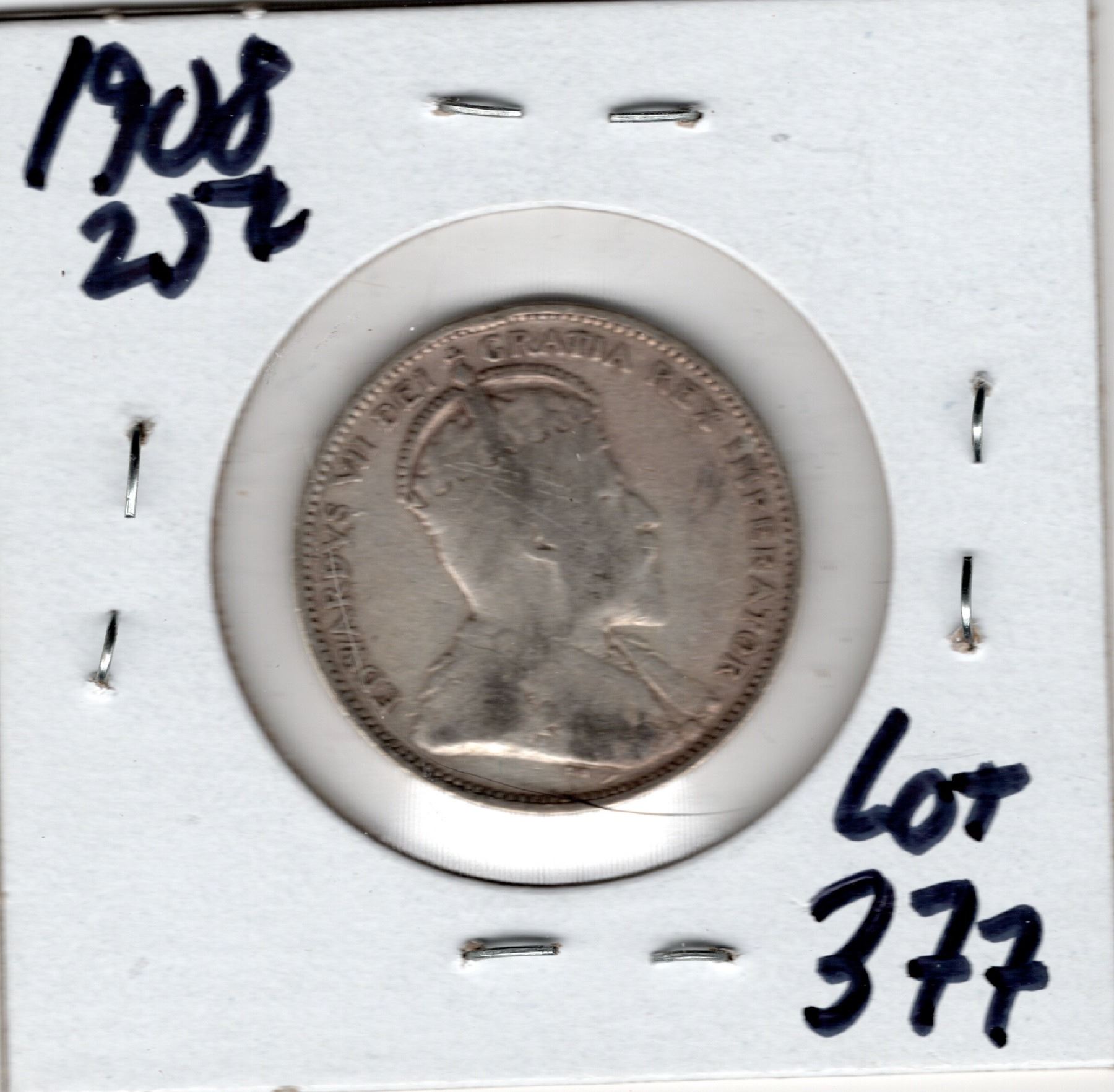 377. 1908, TWENTY-FIVE CENT, SILVER
