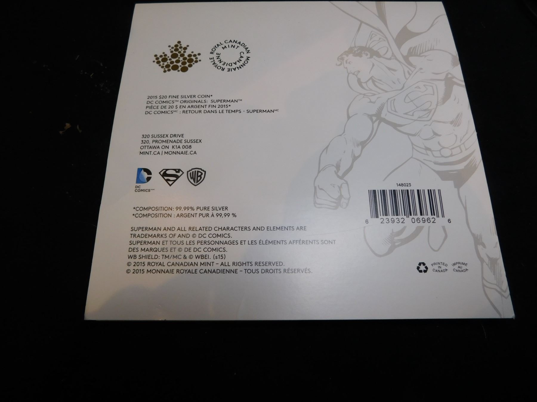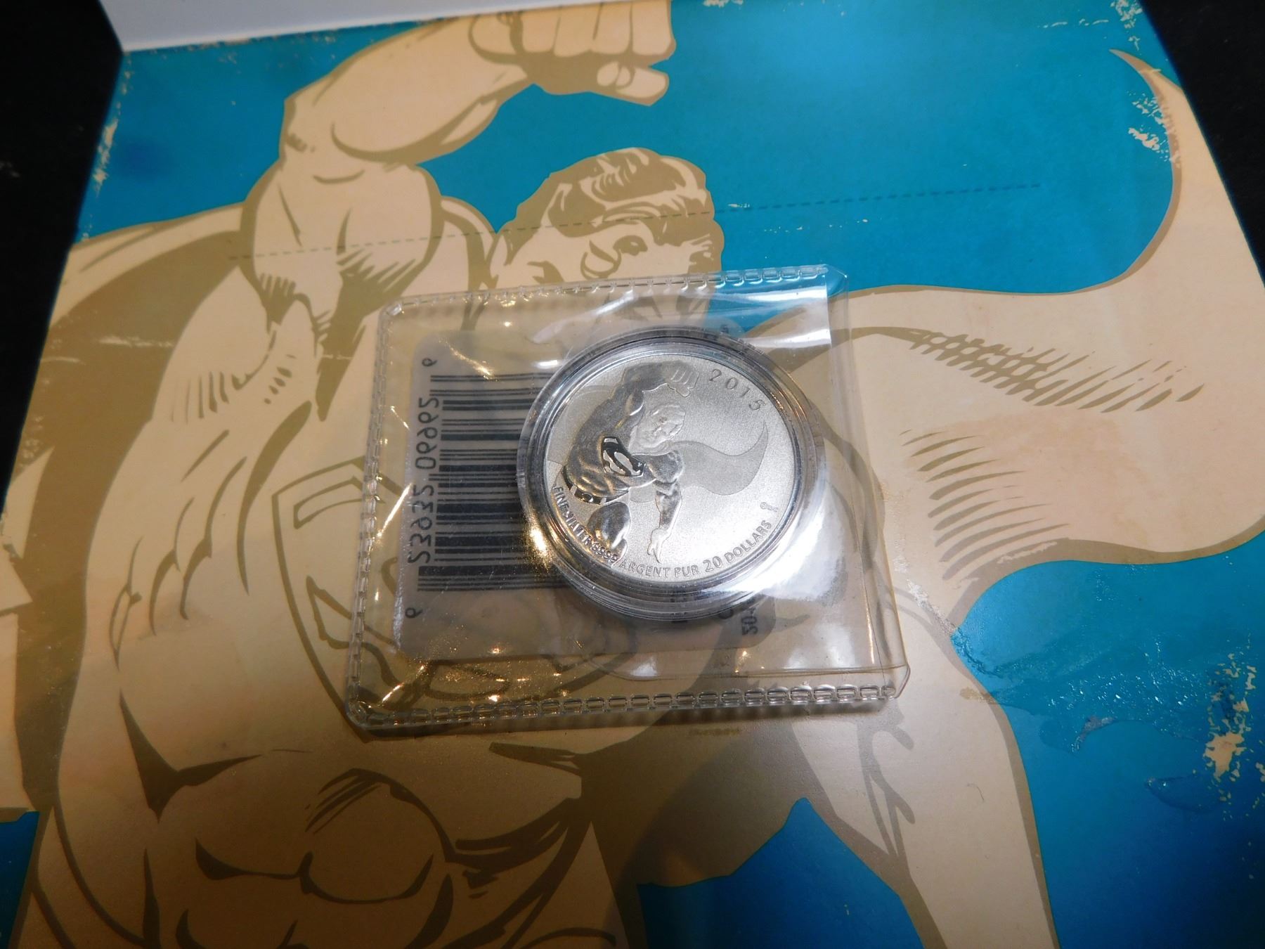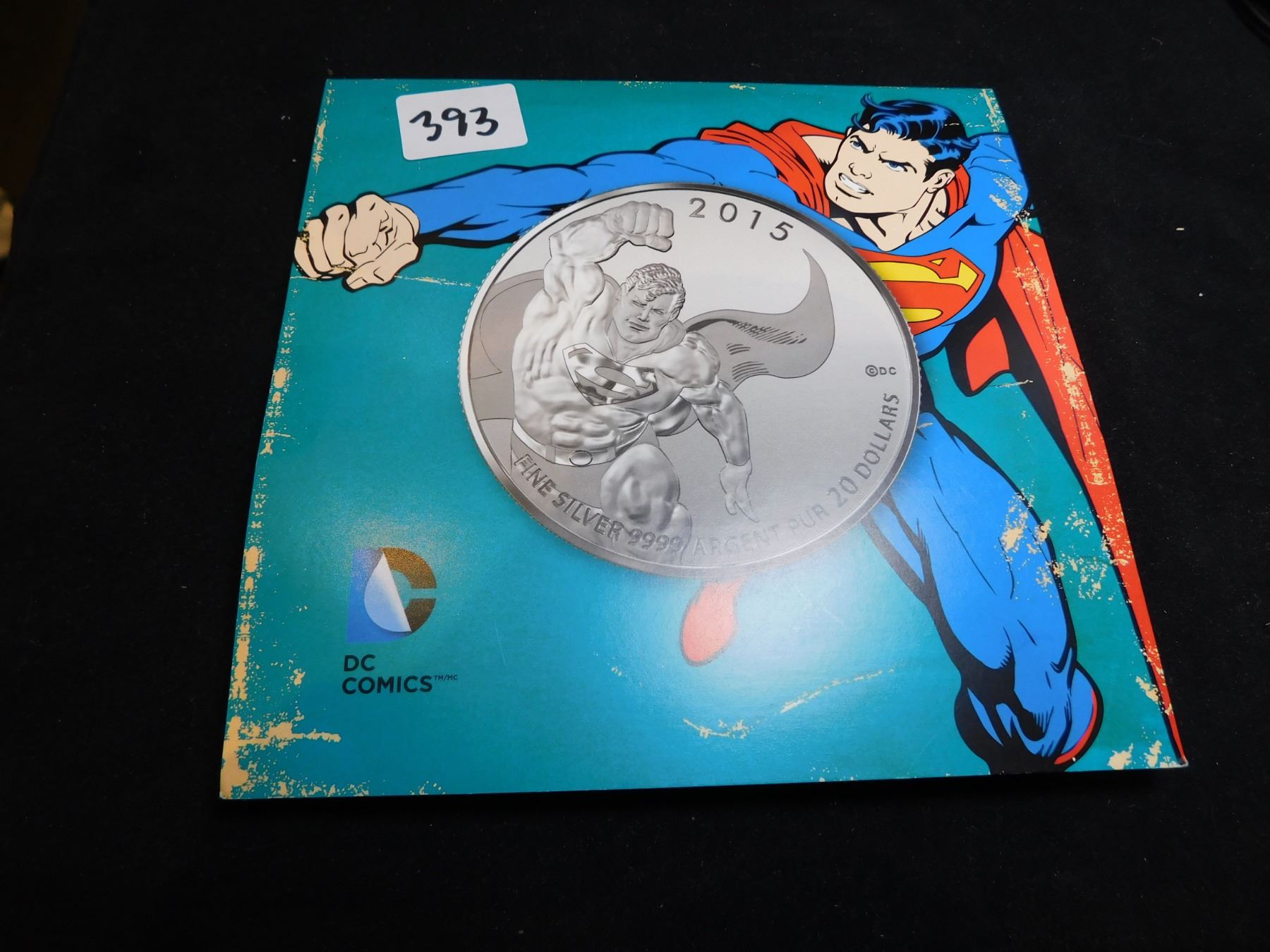 393. 2015, SUPERMAN, TWENTY DOLLARS, QUARTER OUNCE SILVER, WITH CARD
