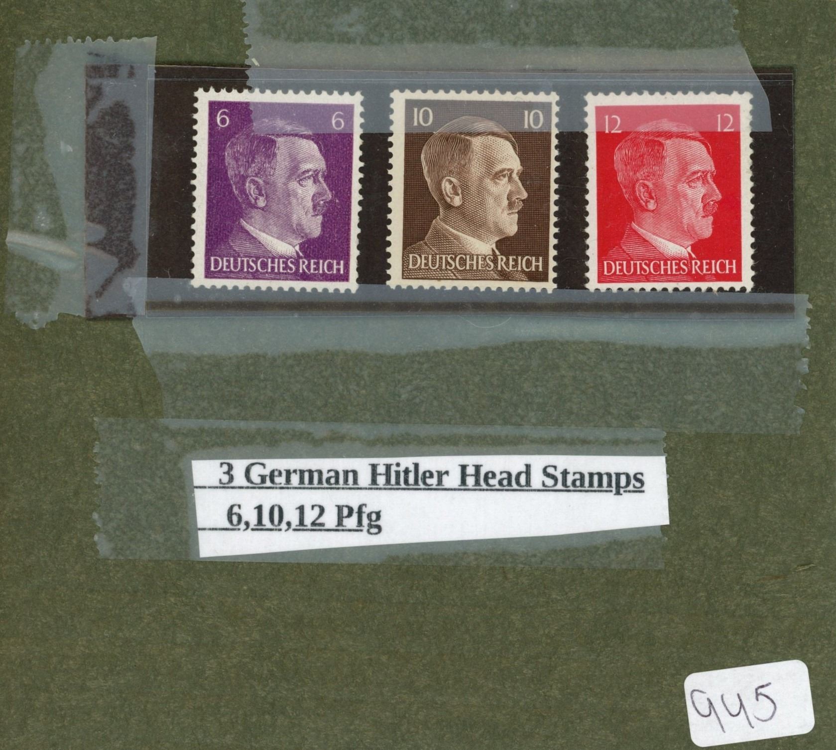 3X German Hitler Head Stamps, 6, 10, 12 PFG