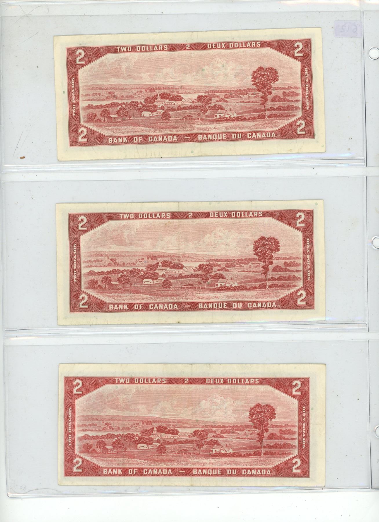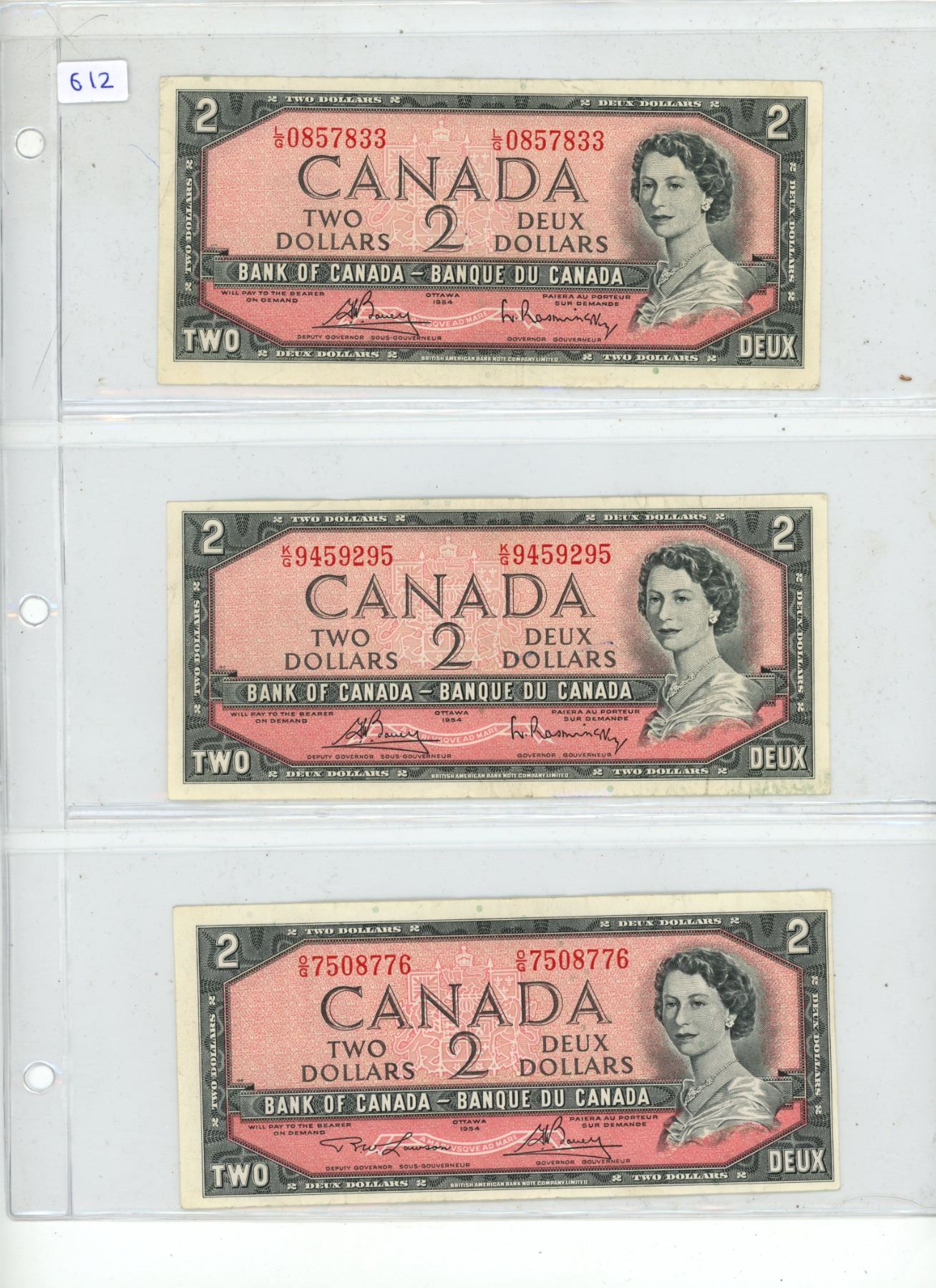 3x 1954 Canadian 2 dollar bills