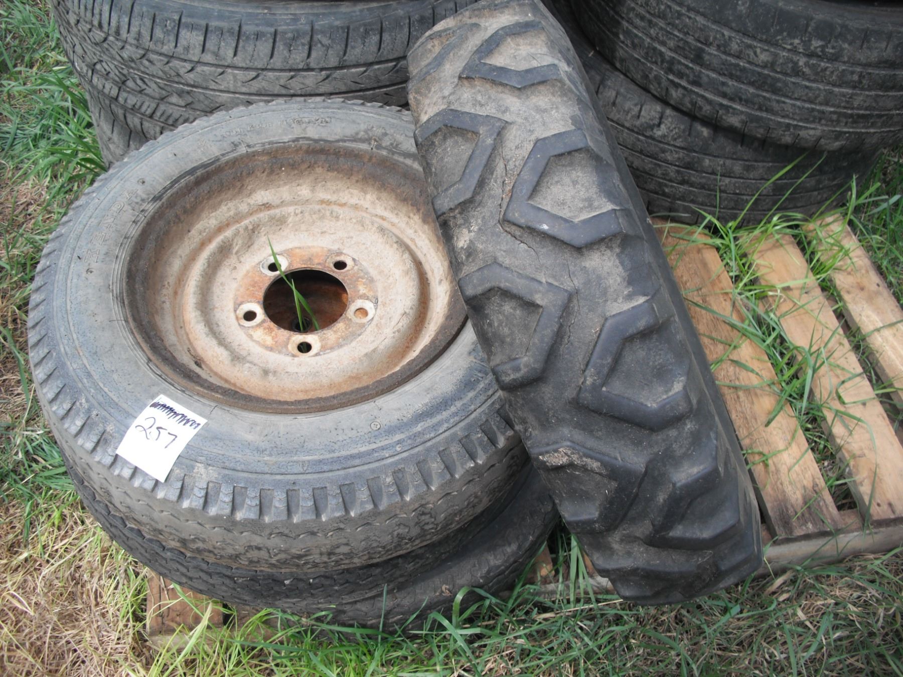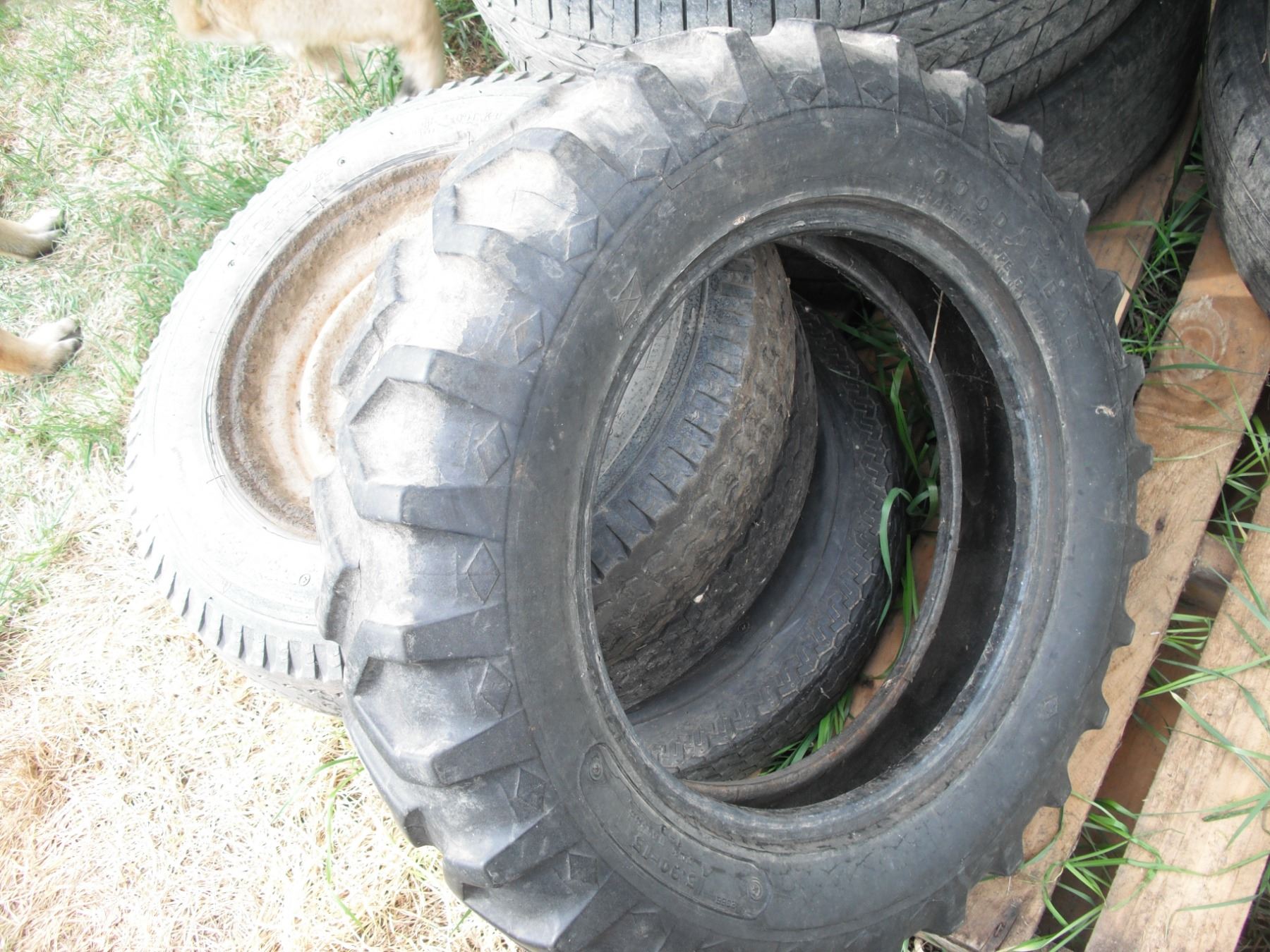 3x 5.3-12 tires with rims and 5.90-15 Goodyear tire