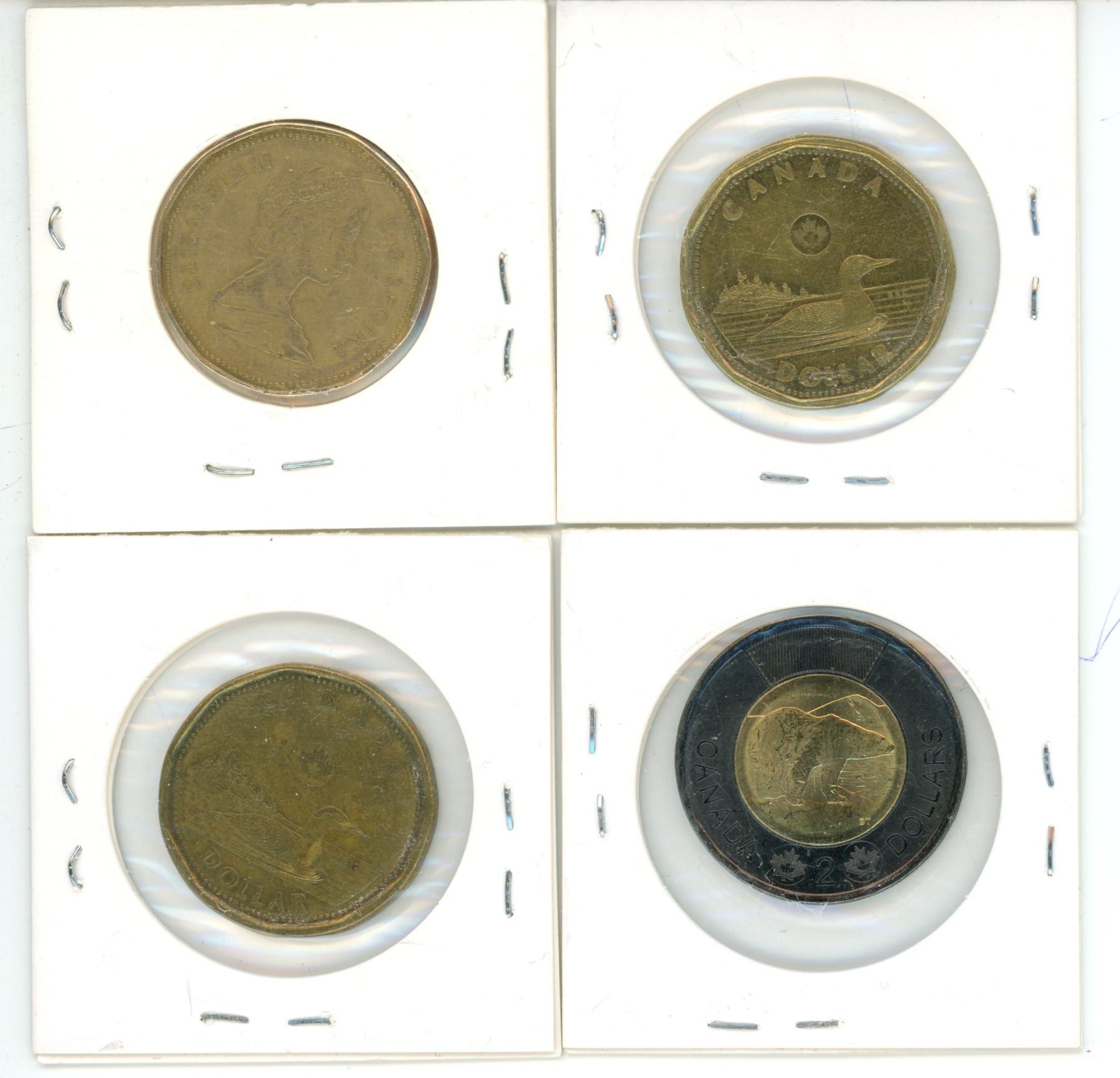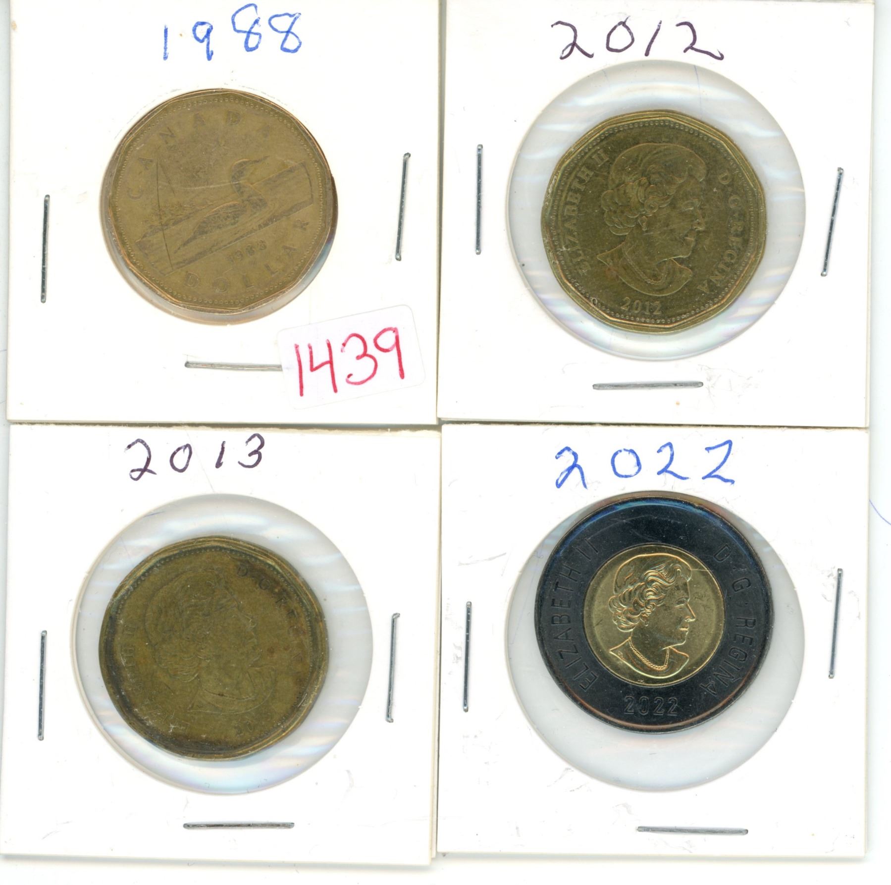 3x Canadian loonies (1988, 2012-2013) & 2022 Canadian black 2$ toonie