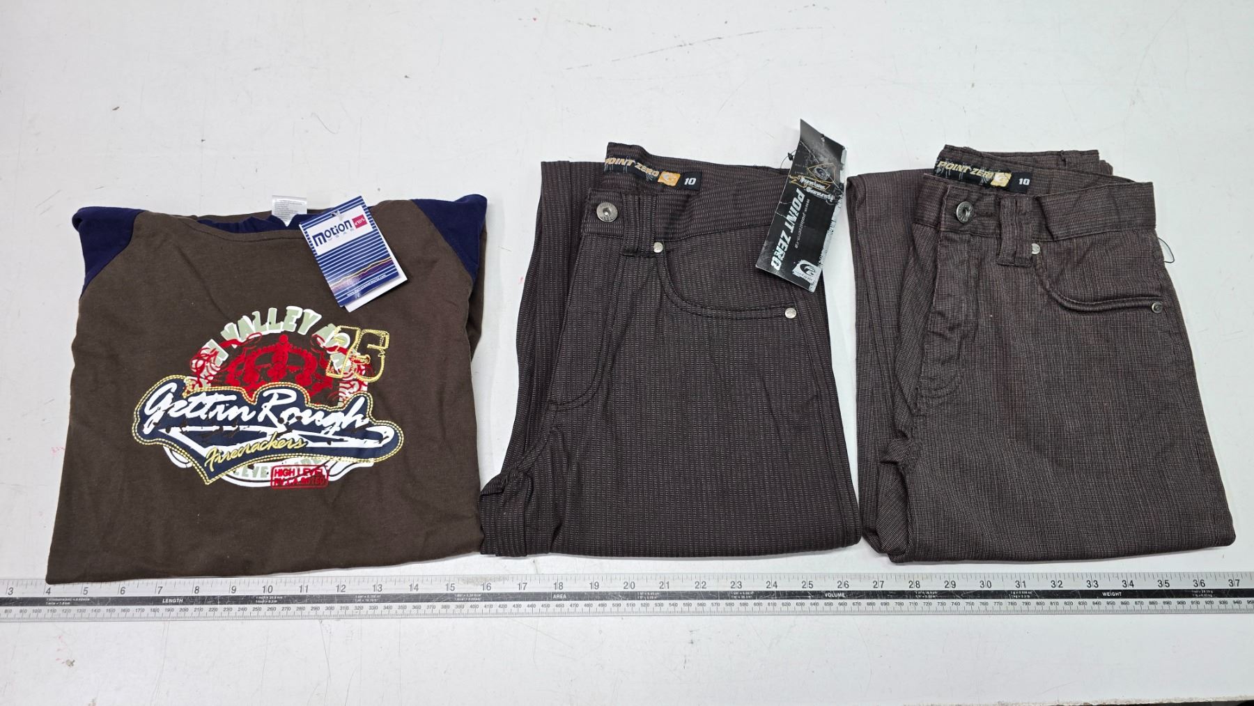 3x New w/ tags - Boys sz 10 pants & Shirt - Motion & Point Zero - some dirt stains