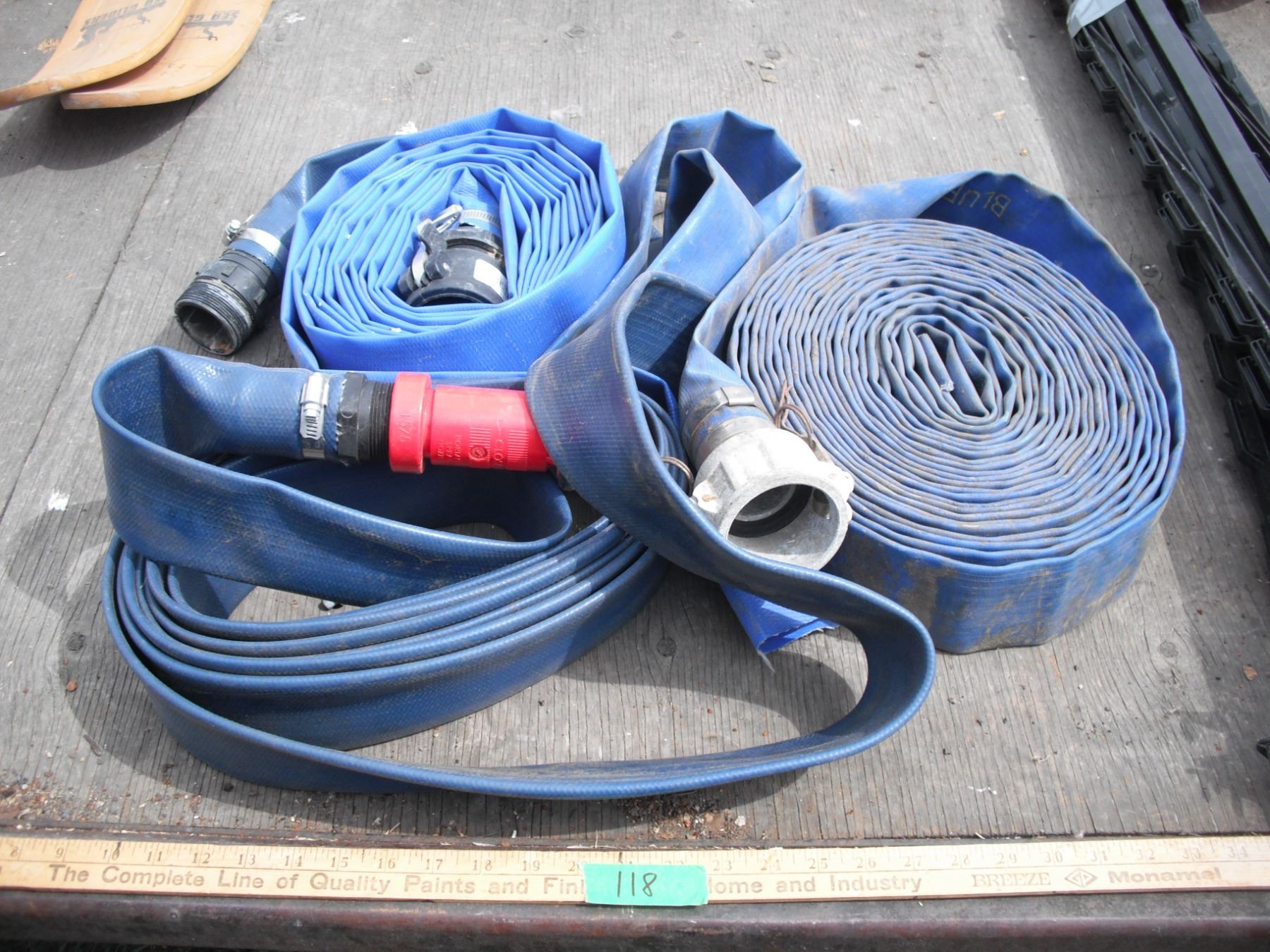3x water pump hoses - 2.5" couplings, 1 with nozzle
