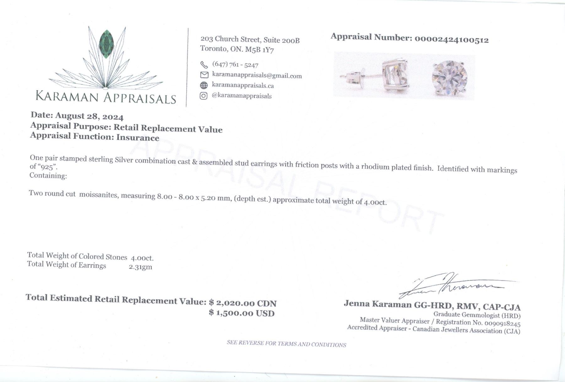 4.00 CT TW GRA CERTIFIED ROUND BRILLIANT CUT MOISSANITE VVS D COLOR EARRINGS SET INTO 925 SILVER