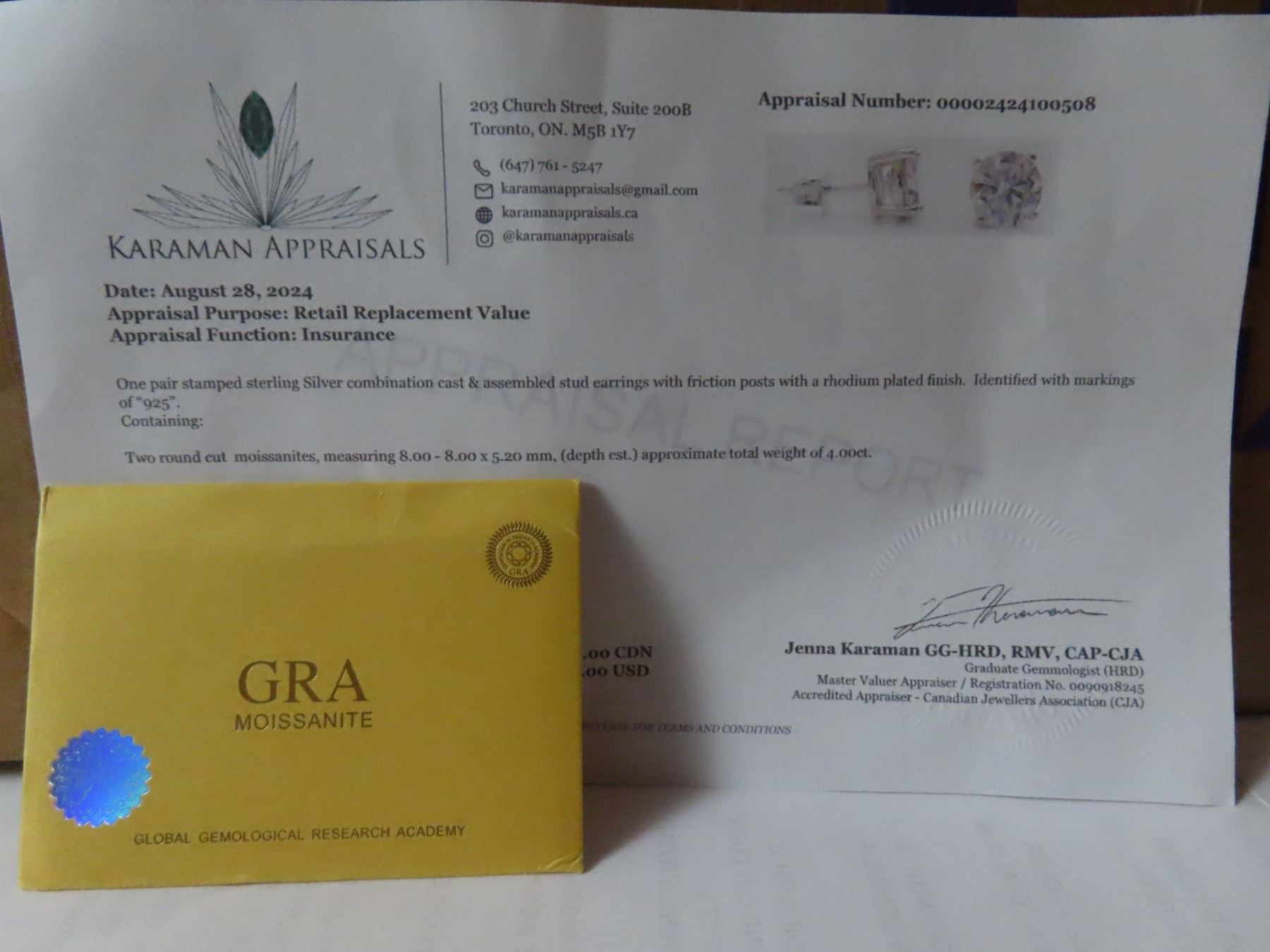 4.00 CT TW GRA CERTIFIED ROUND BRILLIANT CUT MOISSANITE VVS D COLOR SET IN 925 SILVER RETAIL VALUE $2,020.00