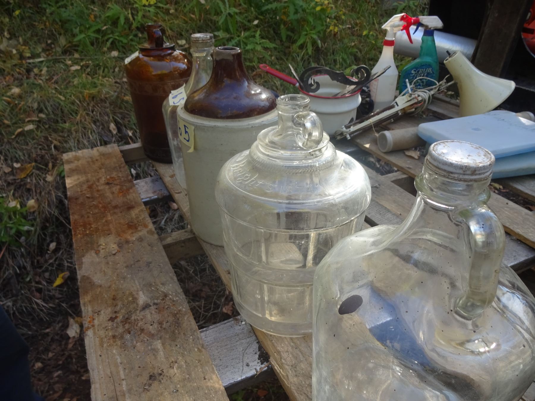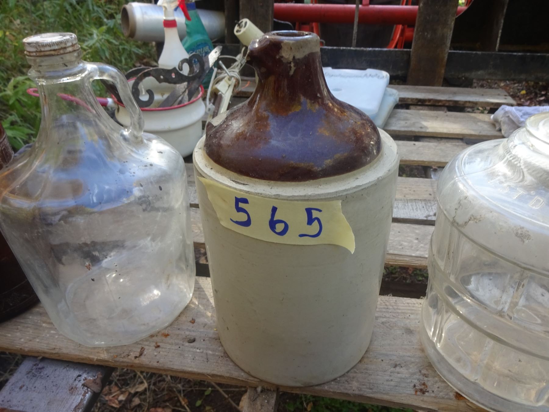 4 1 GALLON + 1 STONE JUG HANDLE BROKEN