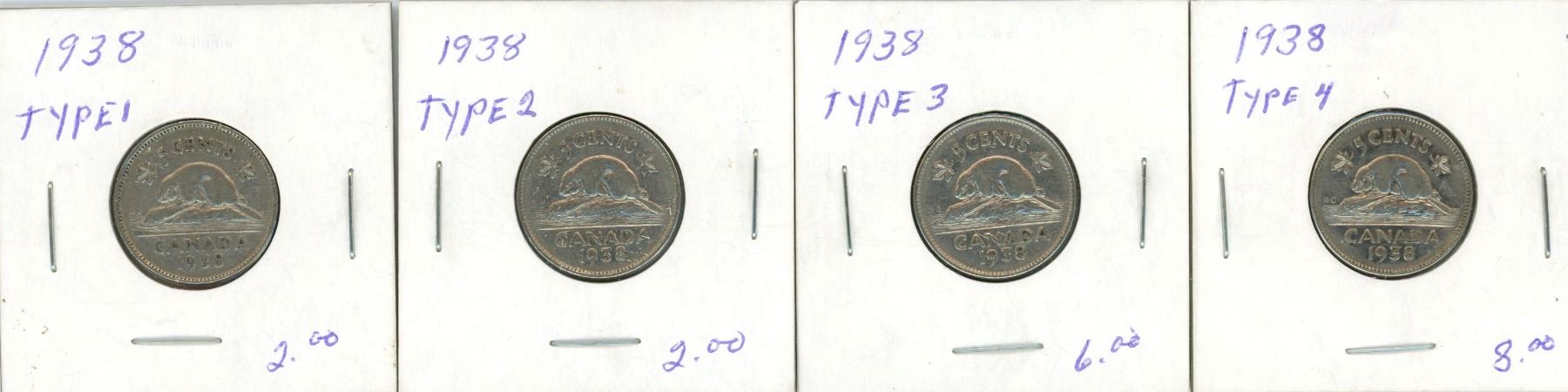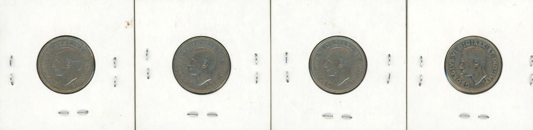 (4) 1938 George VI Five Cent Coin (Types 1-4)