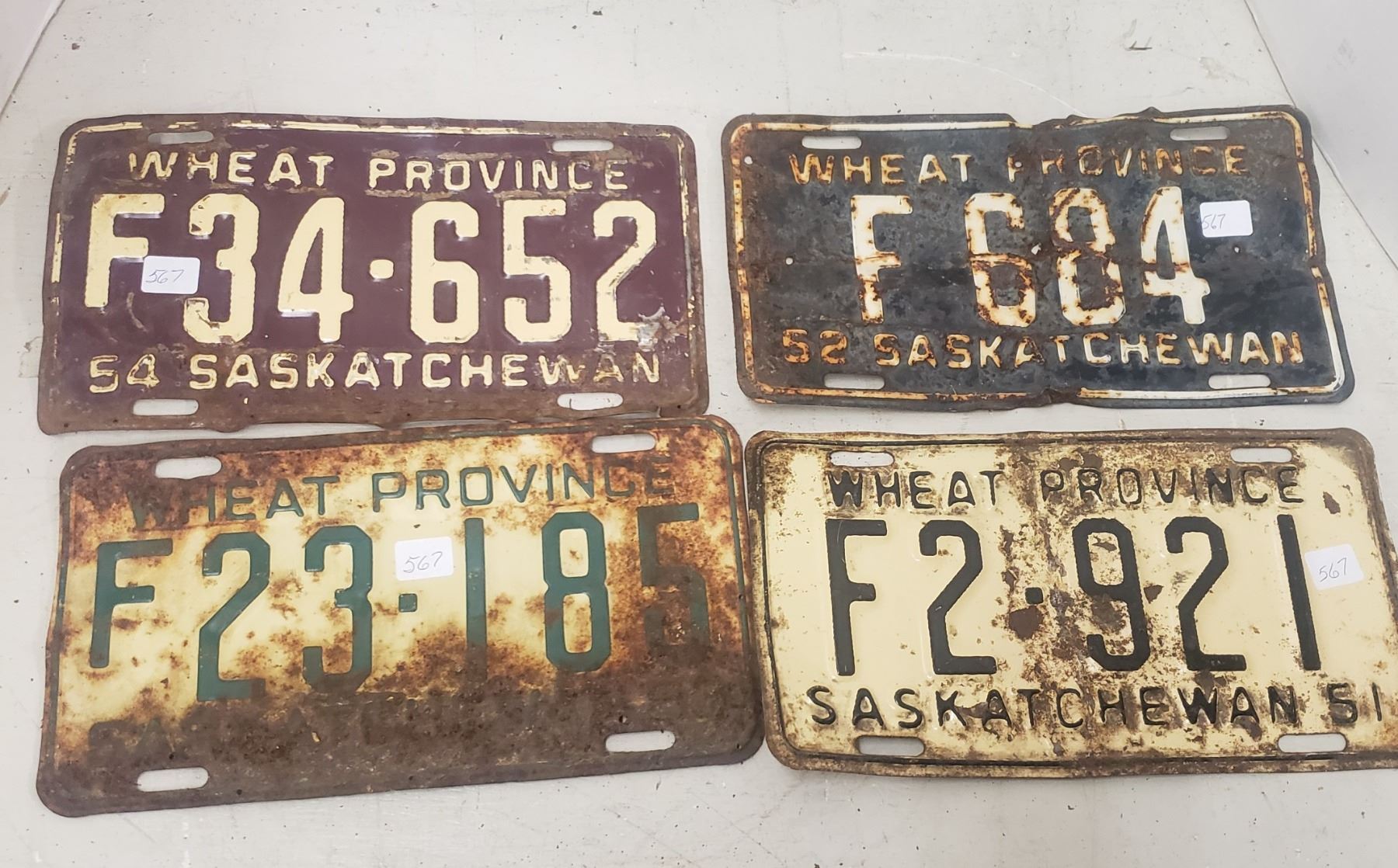 (4) 1950, 1952, 1953, 1954 Saskatchewan Liscence Plate vintage original Sask plate