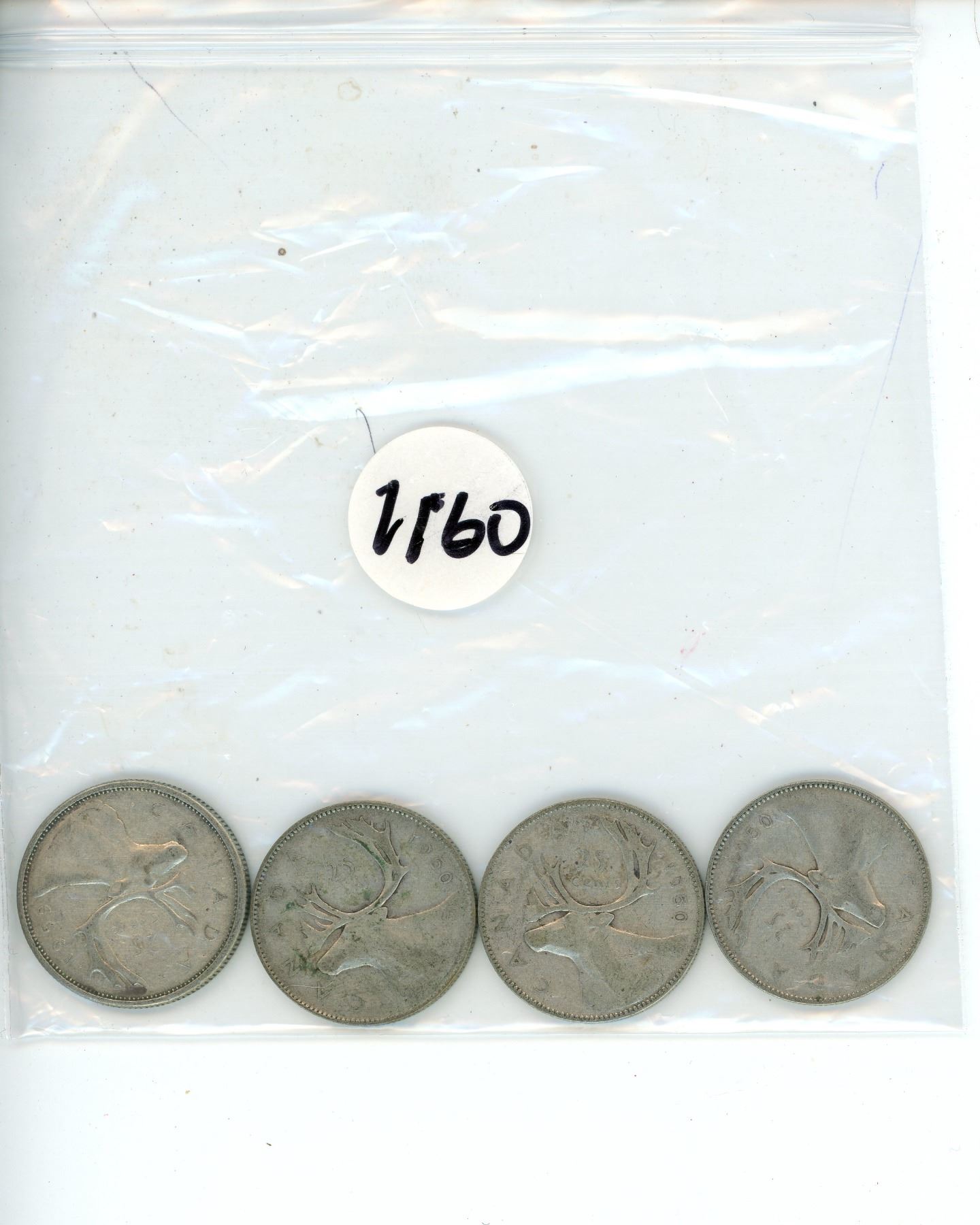 4 1950 Silver Canadian Quarters