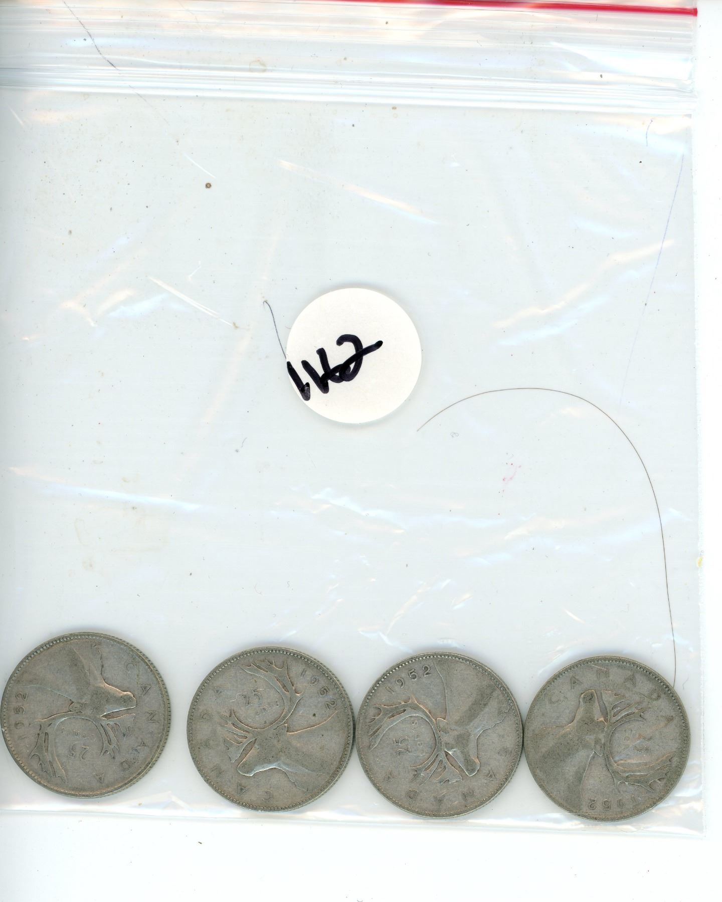 4 - 1952, 1956, 1957 Silver Canadian Quarters