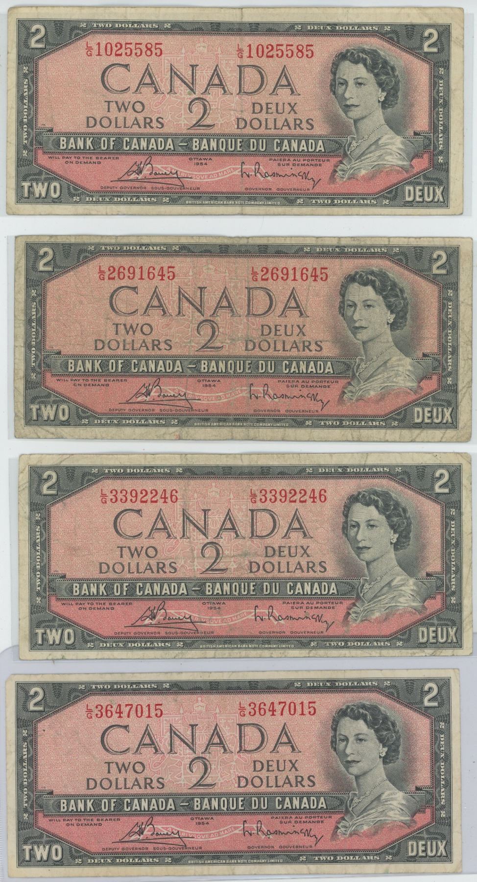 4× 1954 $2 Bills (LG1025585, LG2691645, LG339246, LG3647015)