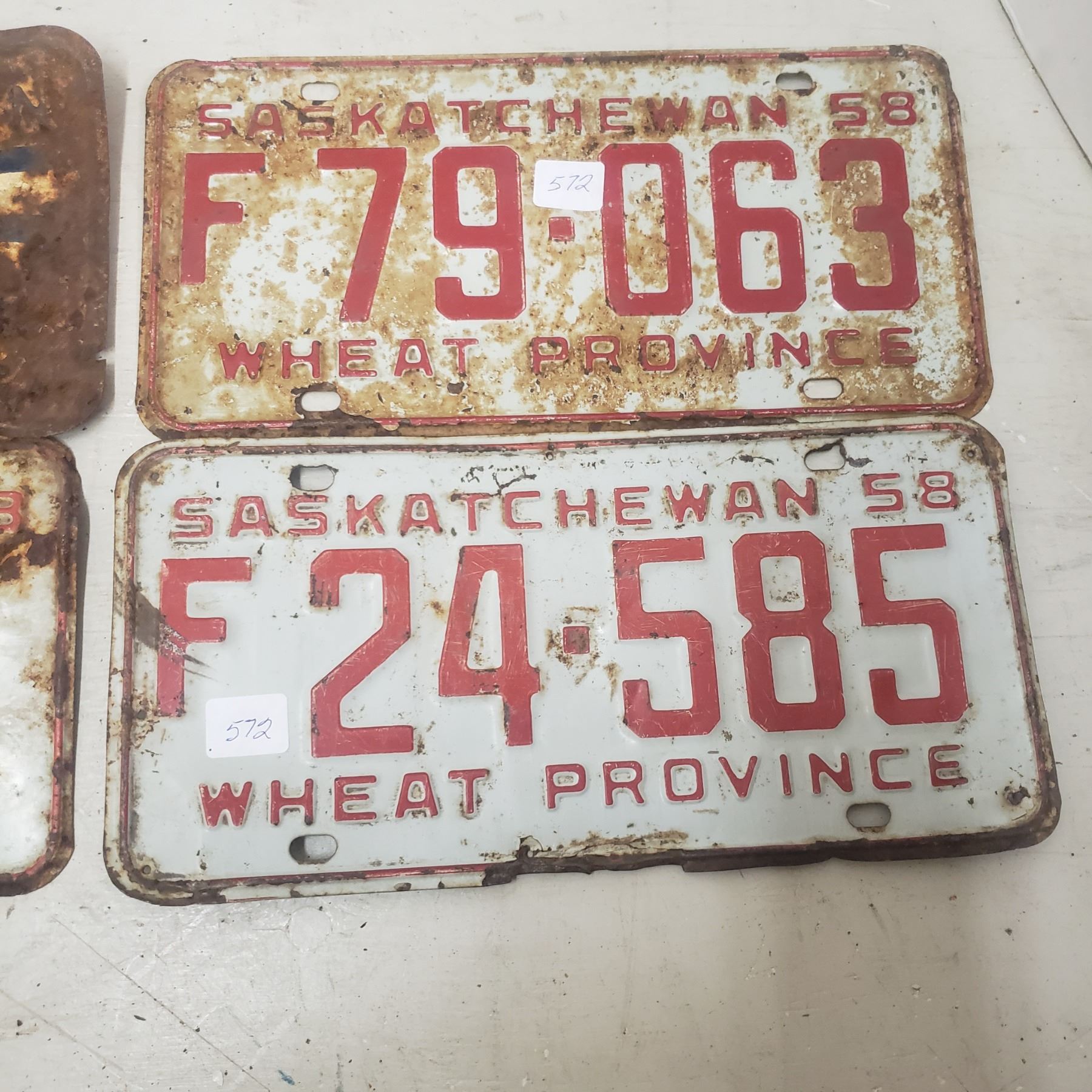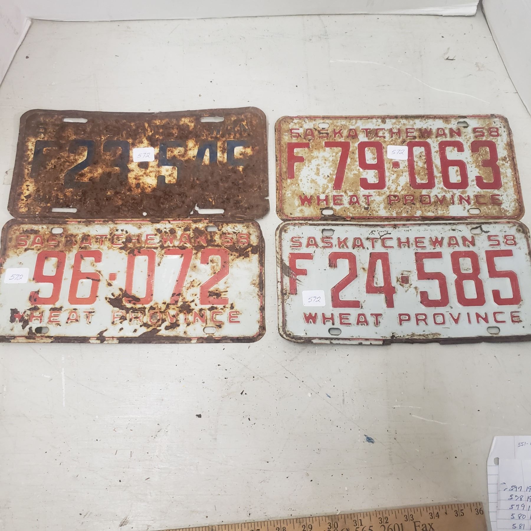 (4) 1957 and 3x 1958 Saskatchewan Liscence Plate vintage original Sask plate