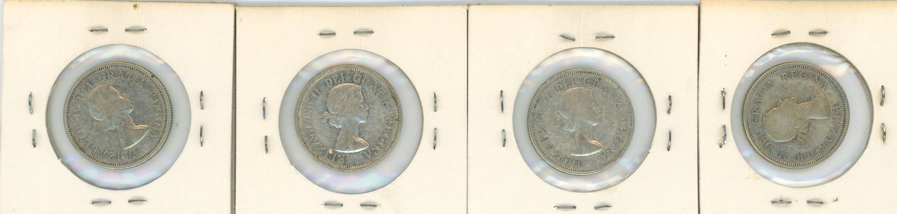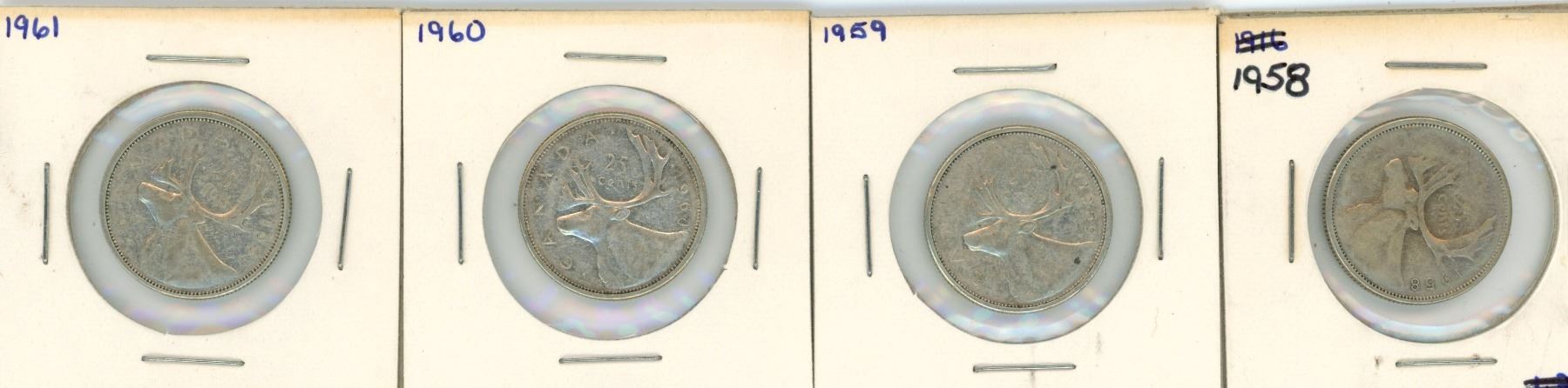 (4) 1958-1961 Canadian 25 Cent Coins