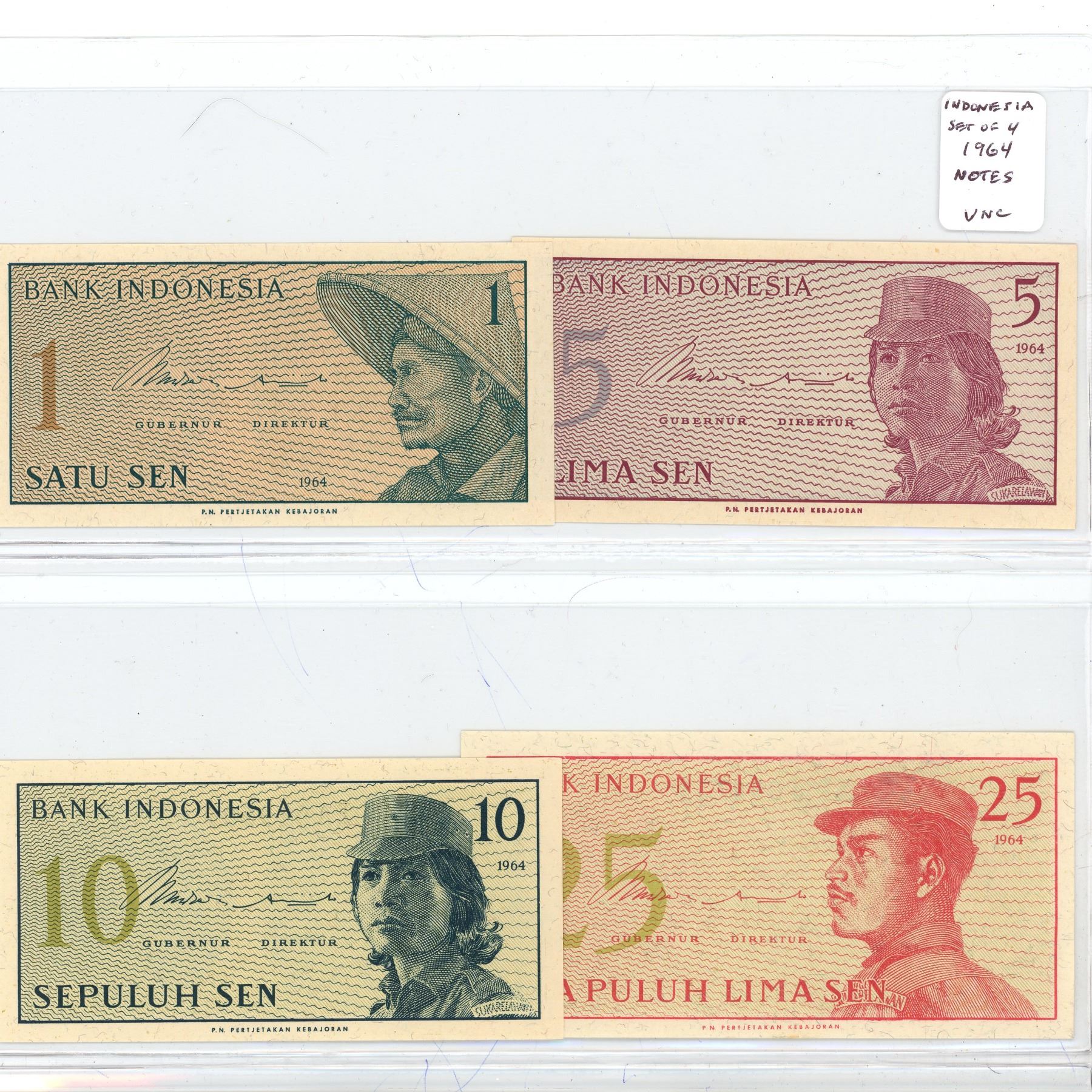 (4) 1964 Indonesia 1-25 Dollar bills