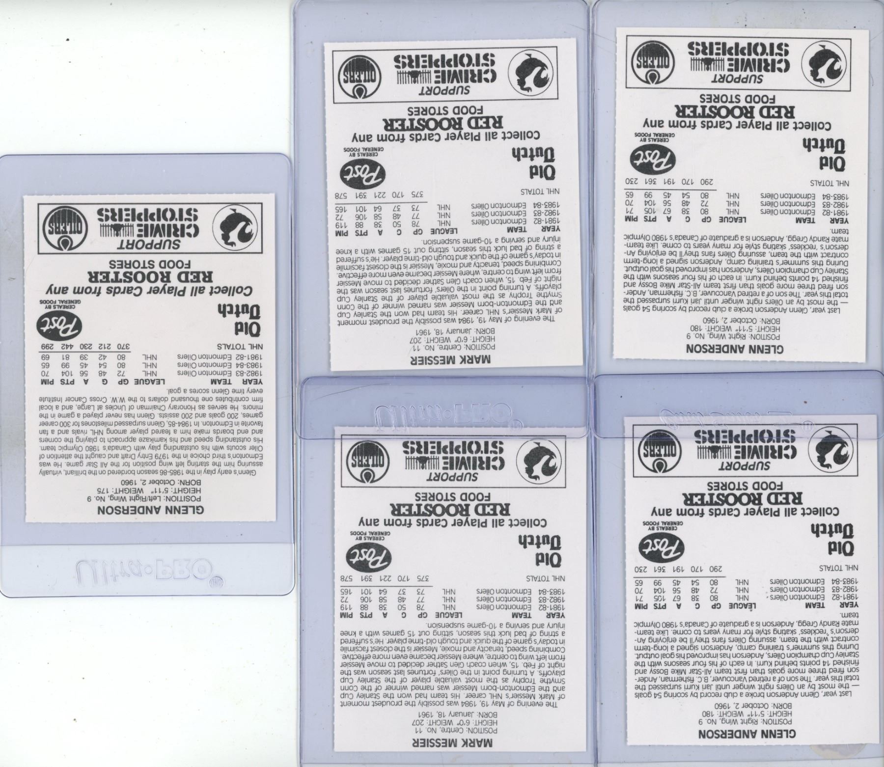 (4) 1984-85 Oilers - Red Rooster Stars and 1882-83 Glenn Anderson.