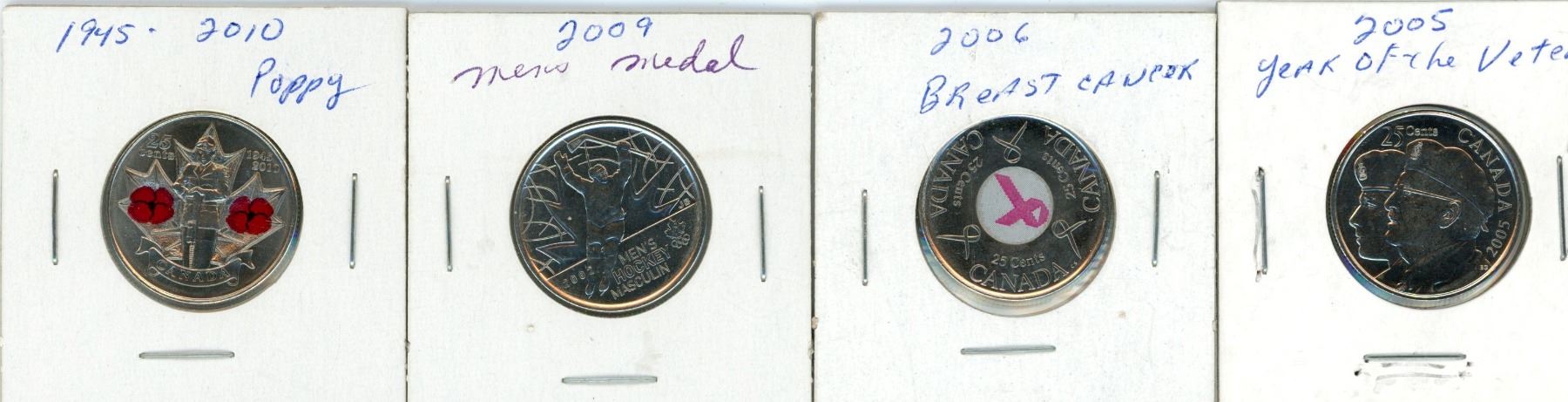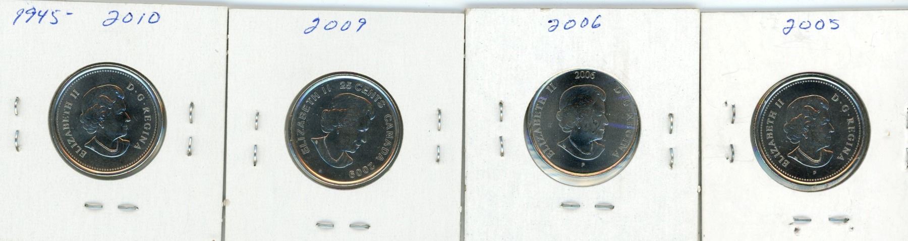 (4) 2005-2010 Canadian 25 Cent Coins