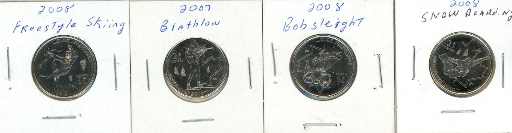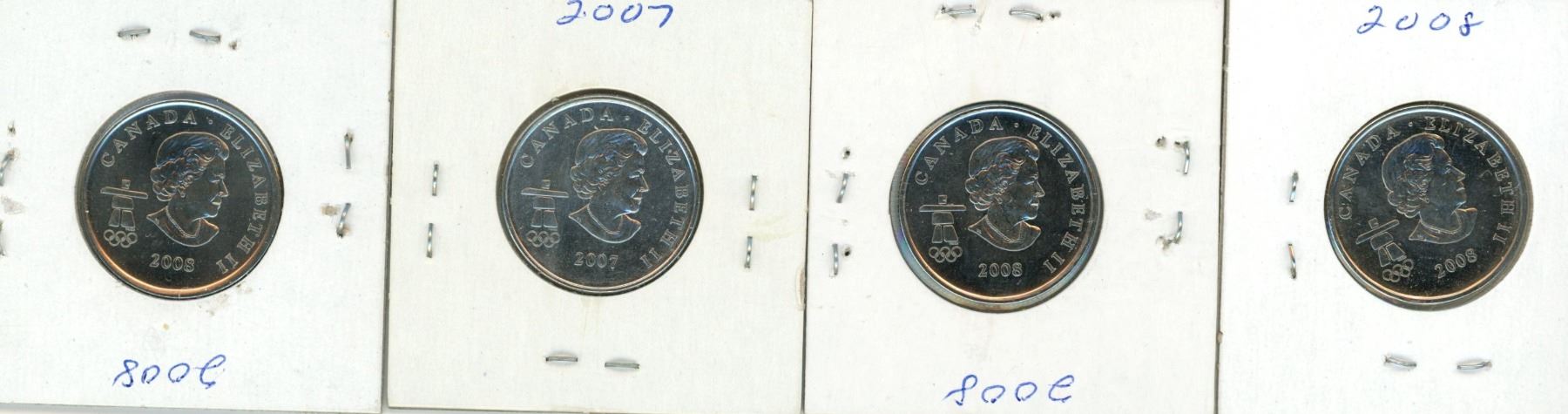 (4) 2007-2008 Canadian 25 Cent Coins
