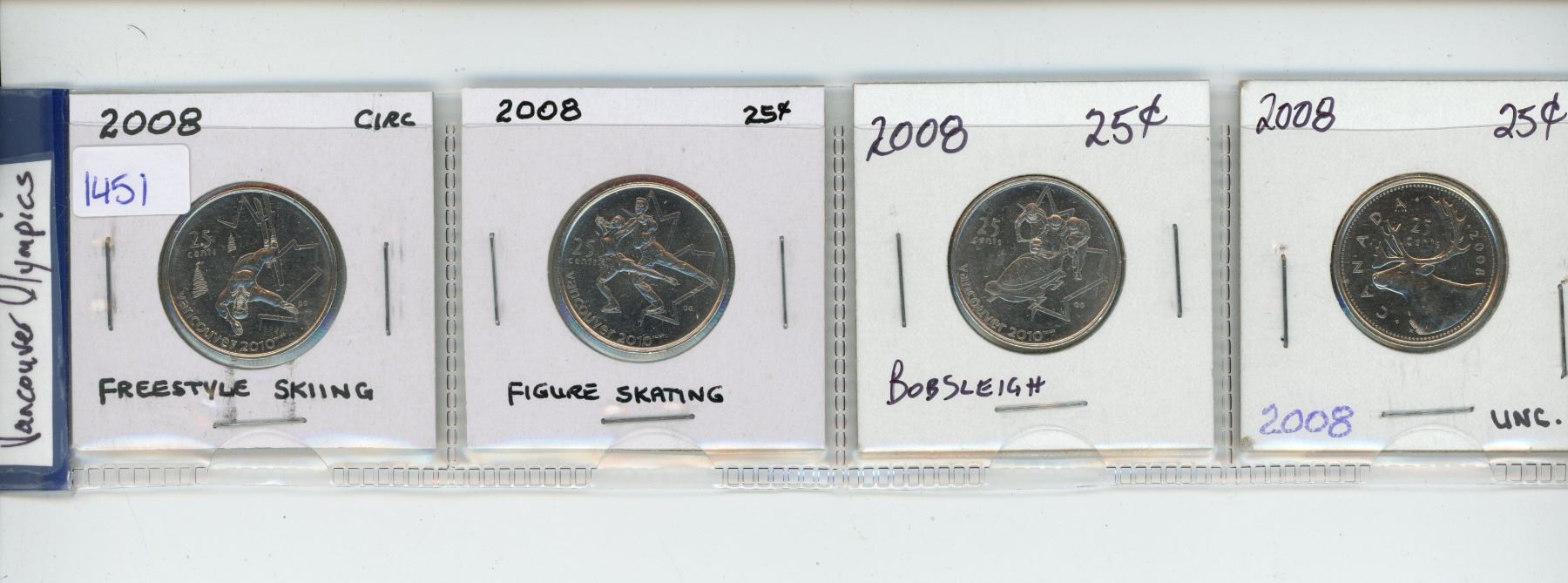 4 2008 Vancouver Olympics Canadian 25 cent coins