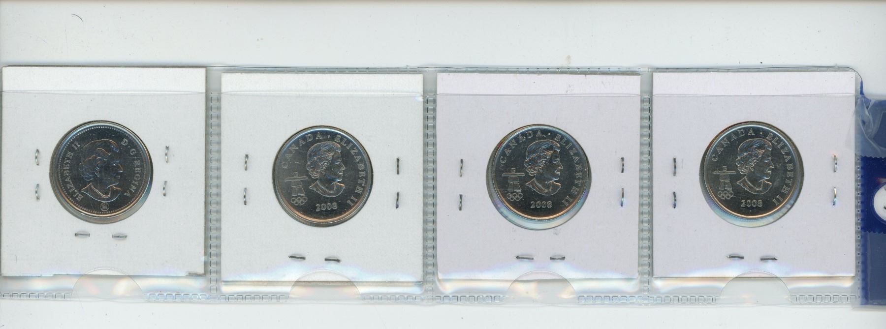 4 2008 Vancouver Olympics Canadian 25 cent coins