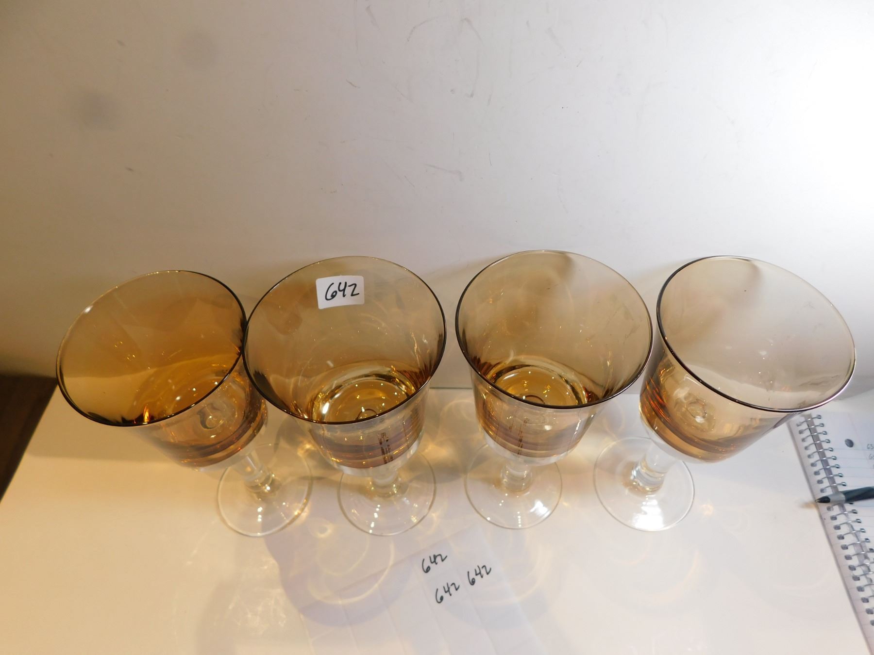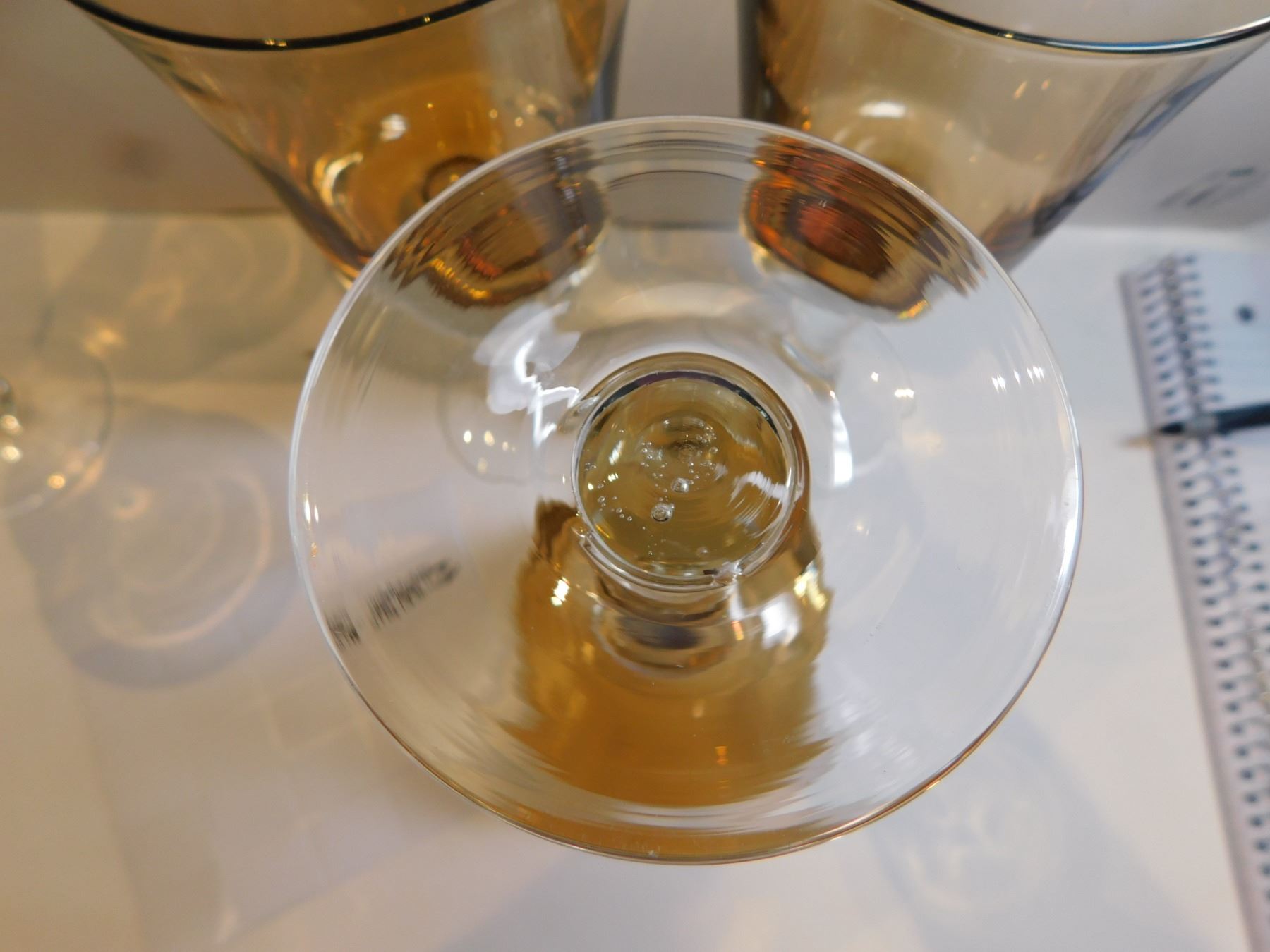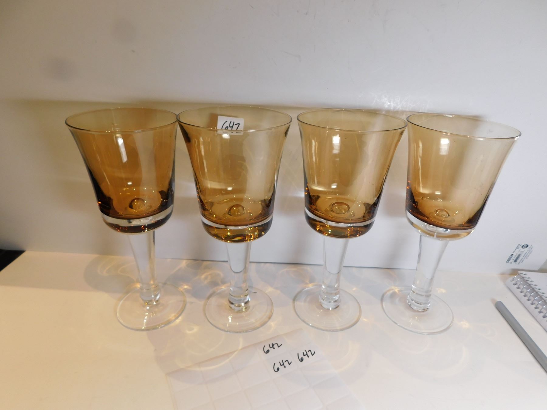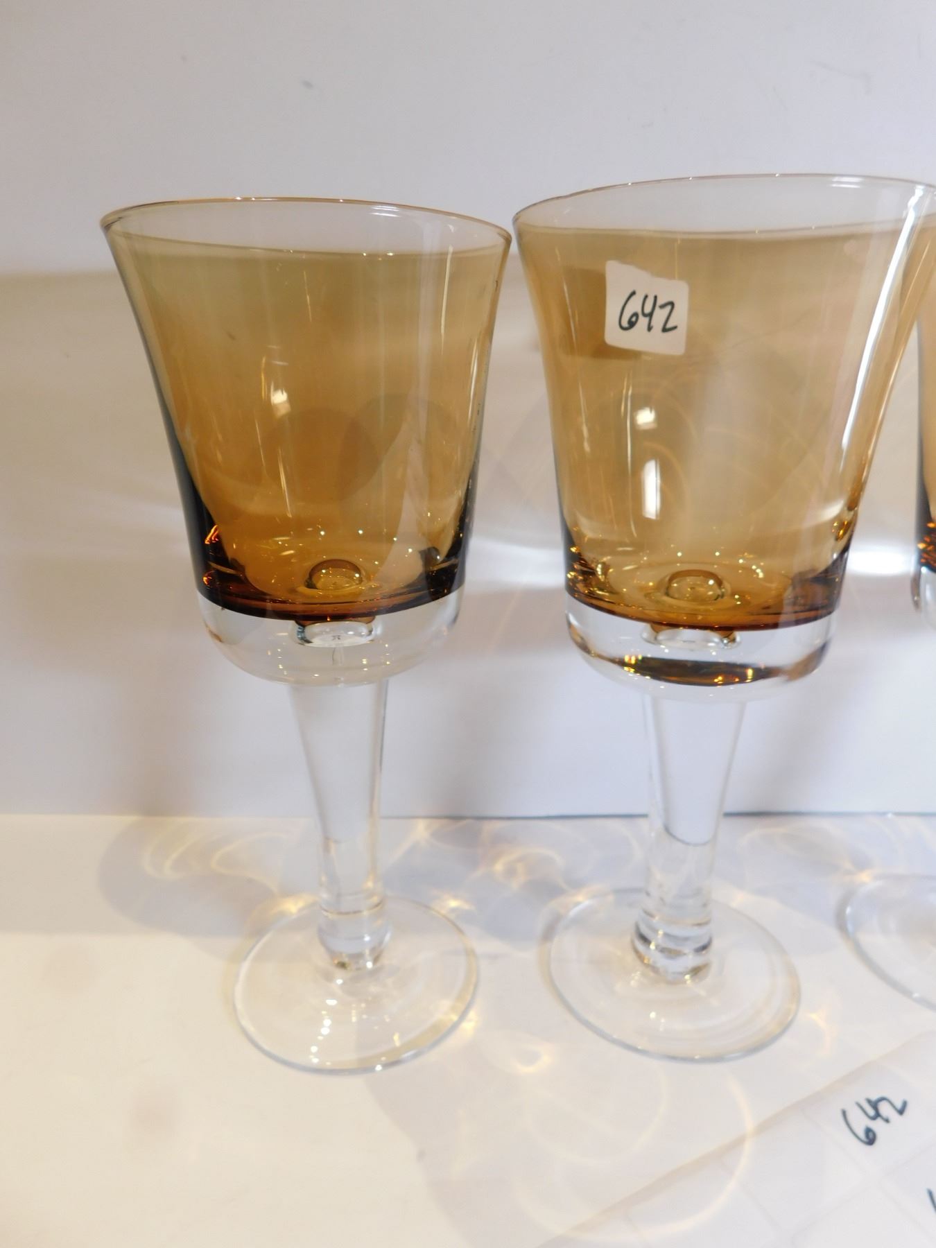 4-AMBER AND CLEAR HAND BLOWN, WINTERTHUR JEWEL TONE WATER/WINE GOBLETS