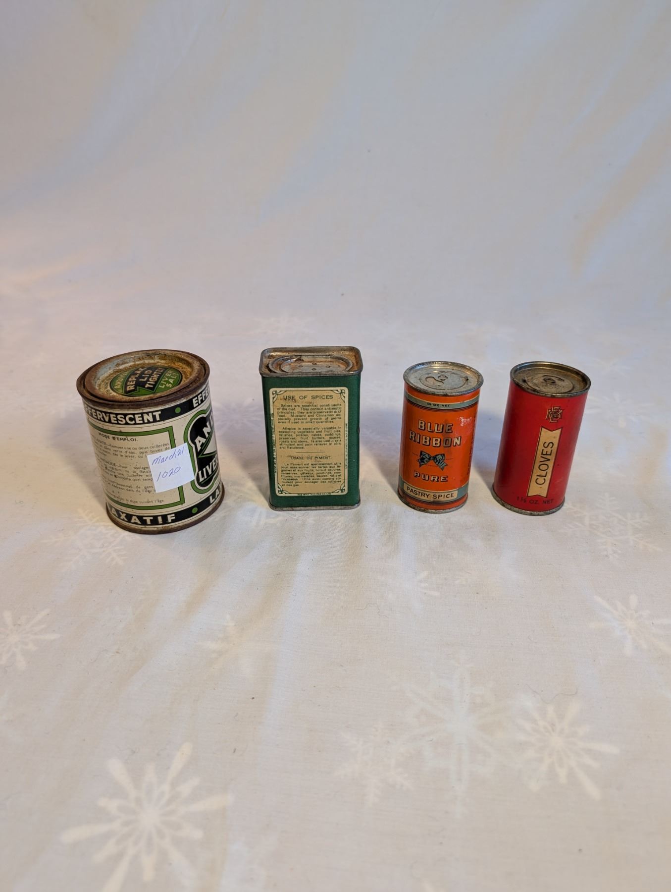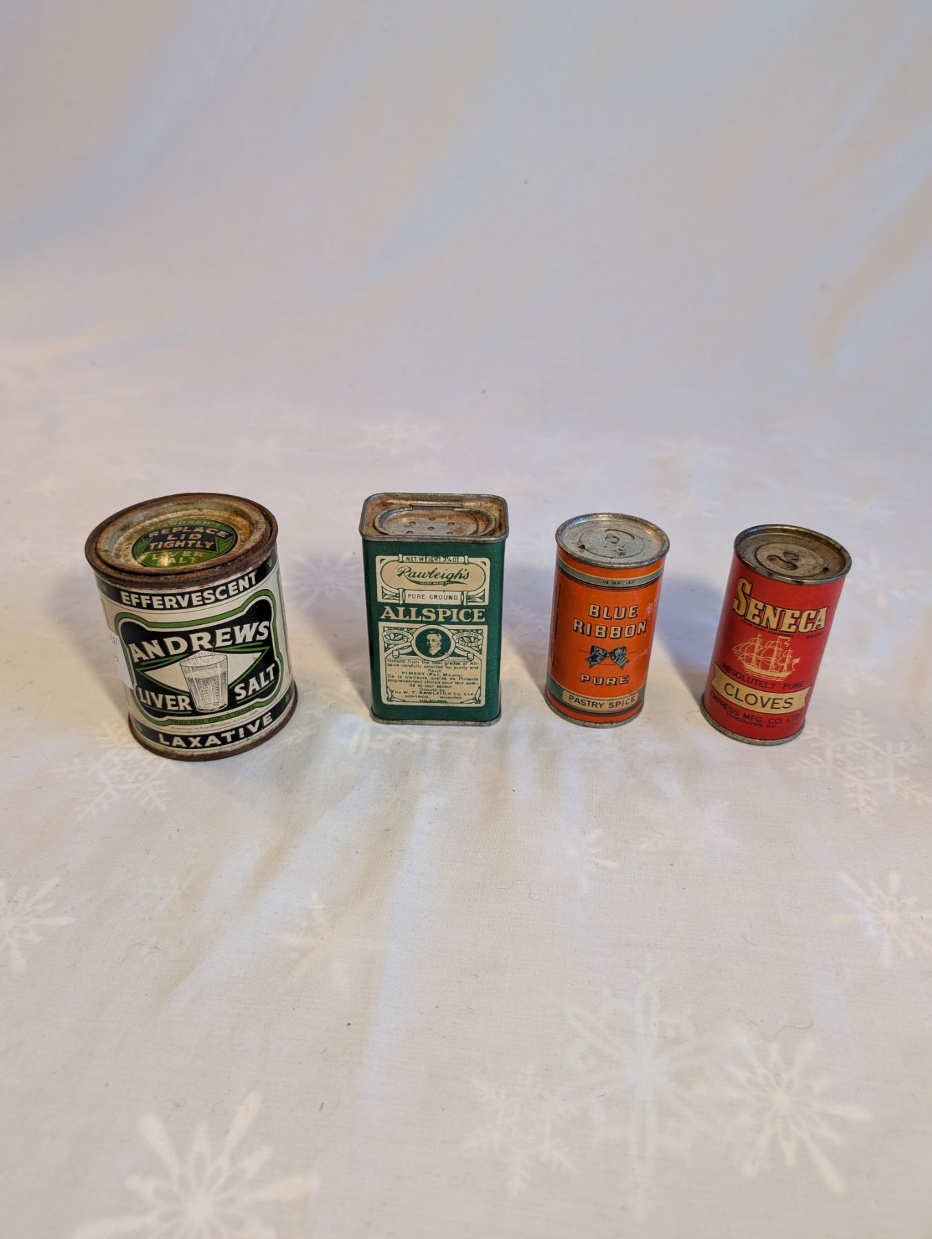 4 Antique Spice Cans and 1 Liver Salt Laxative Can.