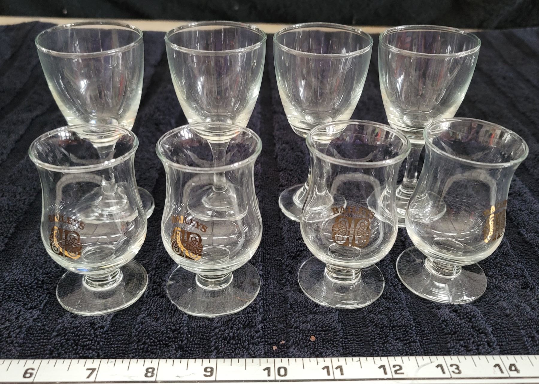 4 Bailey's liqueur glasses and 4 plain liqueur glasses