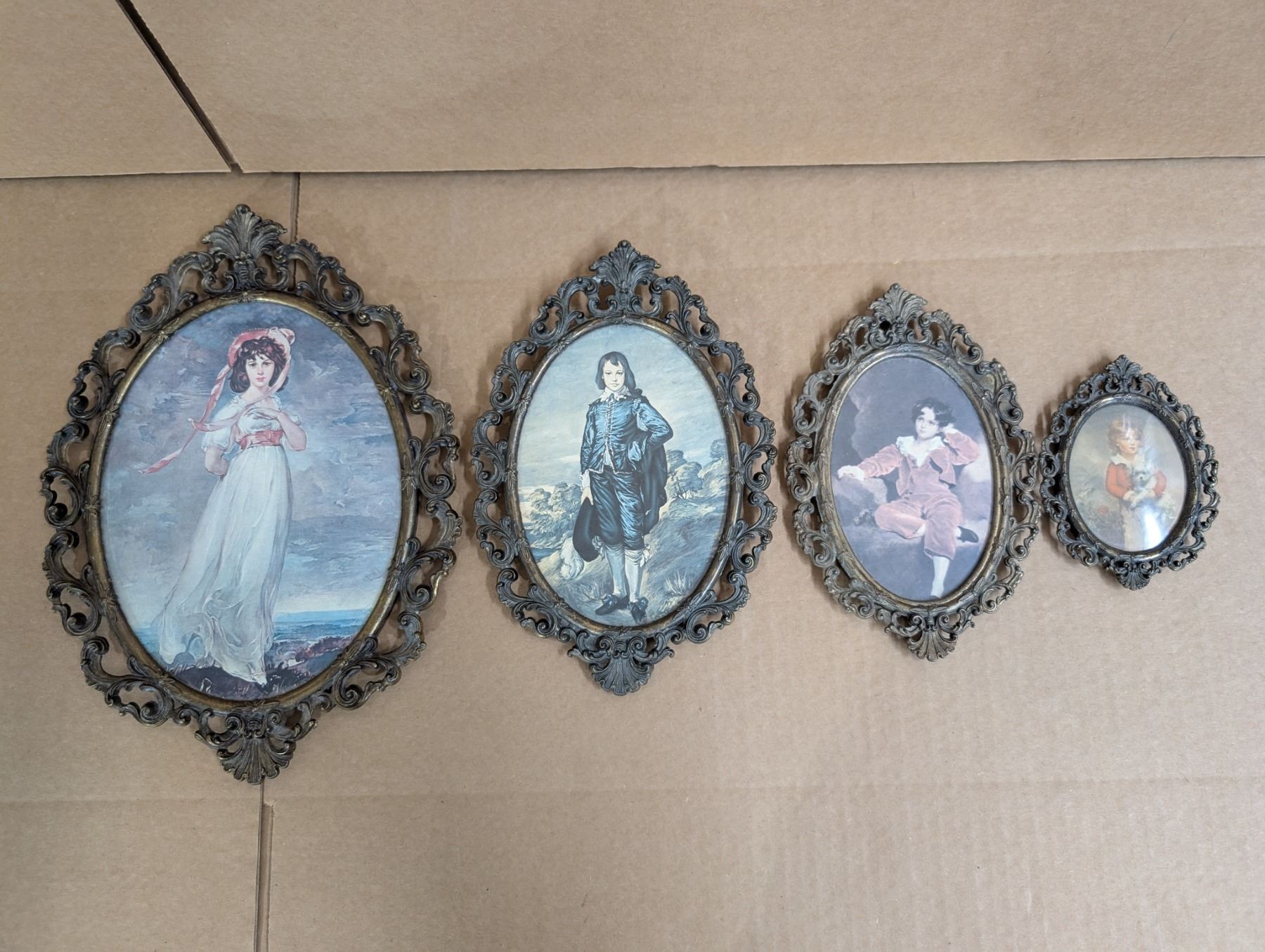 (4) Big to Small Vintage Framed Prints (Frames Made in Italy Marked) 13"-5"x9"-4"