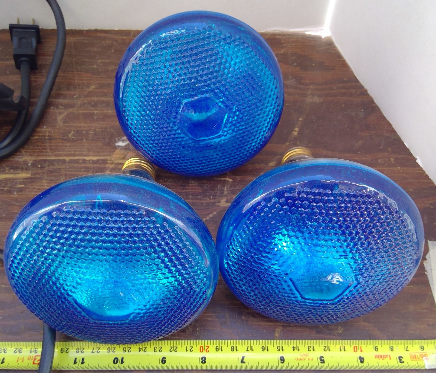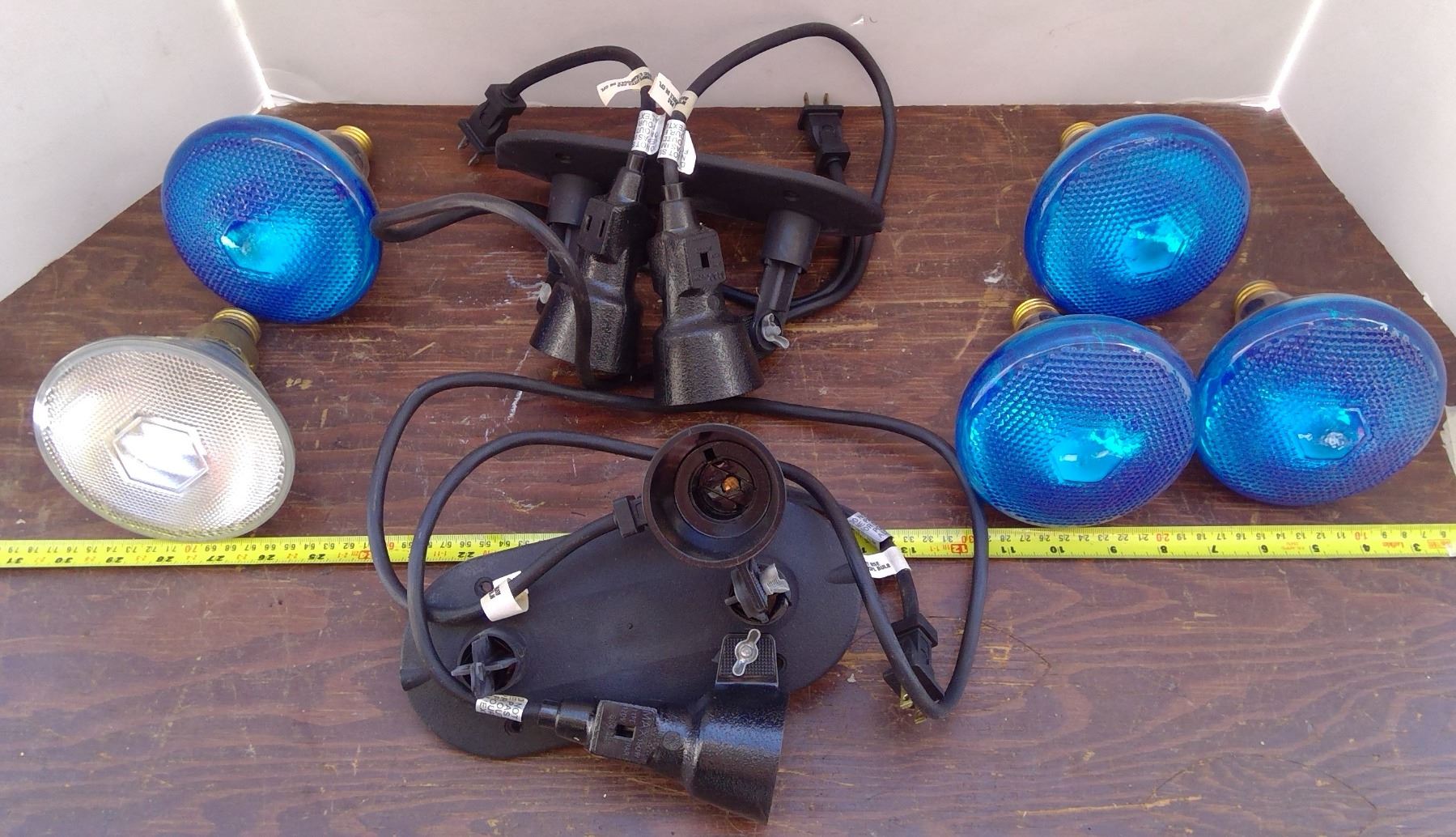 4 Blue Halogen Bulbs, 1 Clear & 2 Dual Bulb Receptacles
