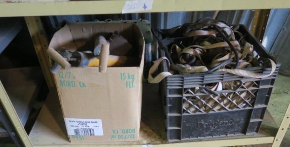 4 Boxes of Misc. Items, Including Straps and Pesticide Applicators