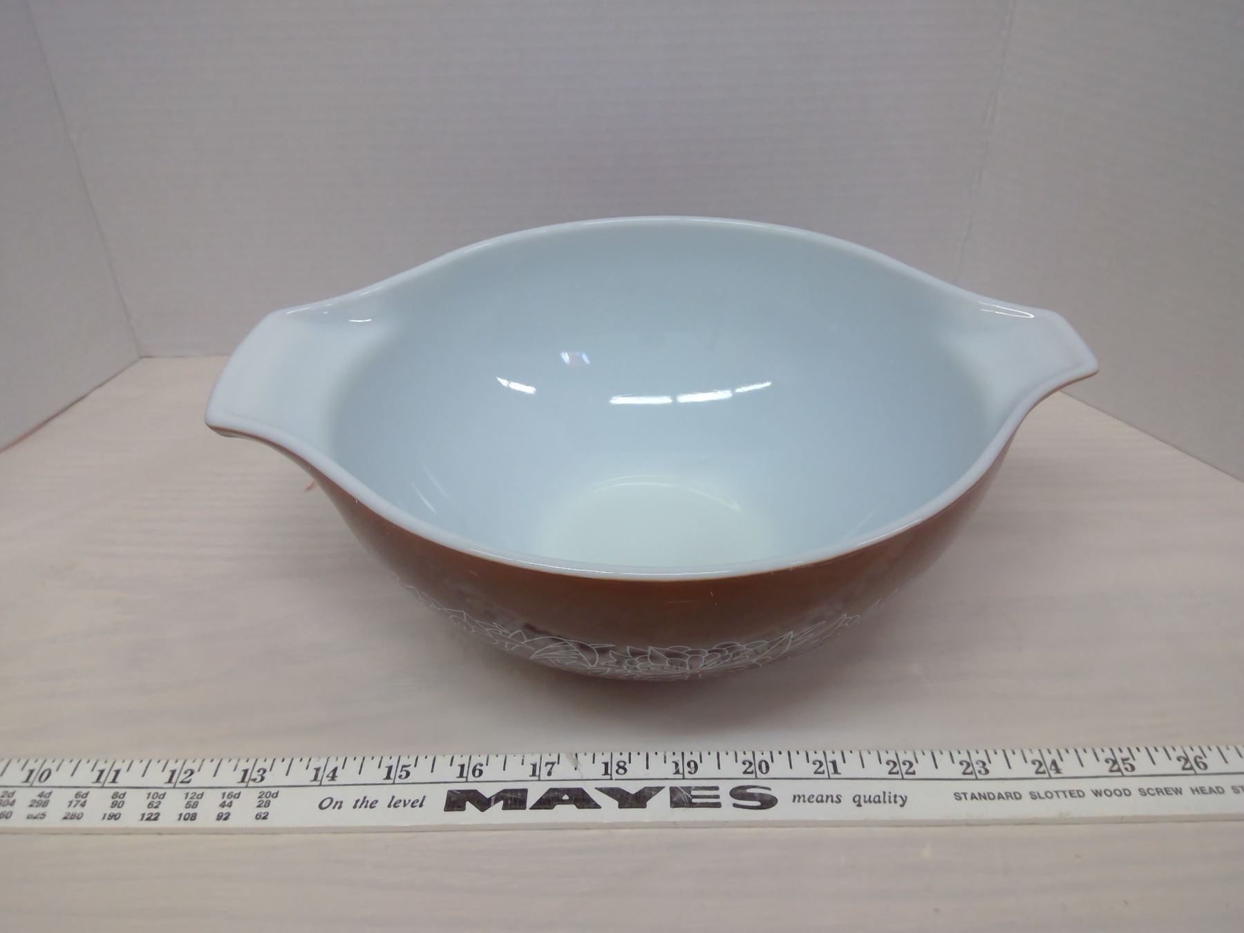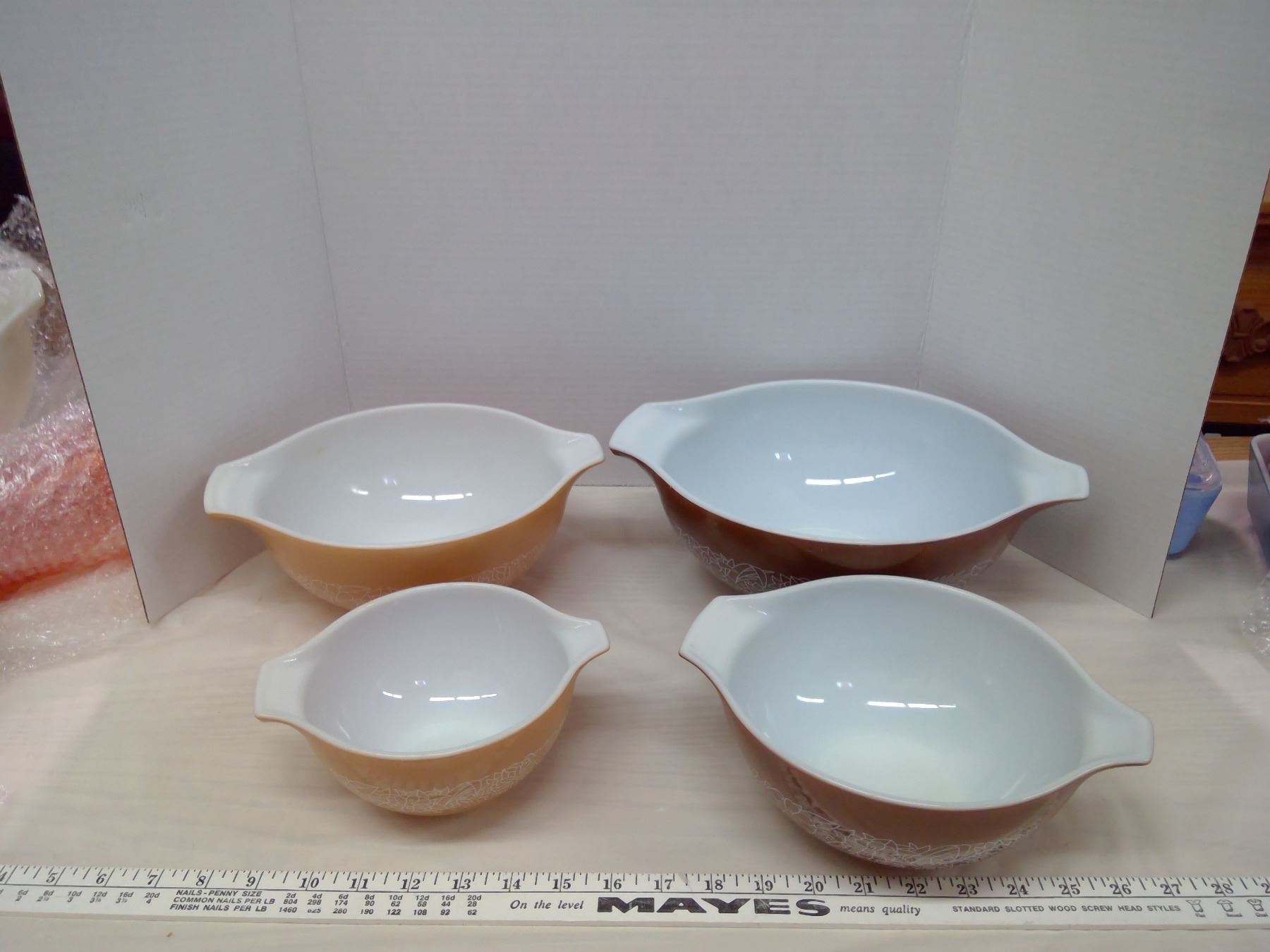 4 Brown Pyrex Bowls - 6", 7", 8", 10"
