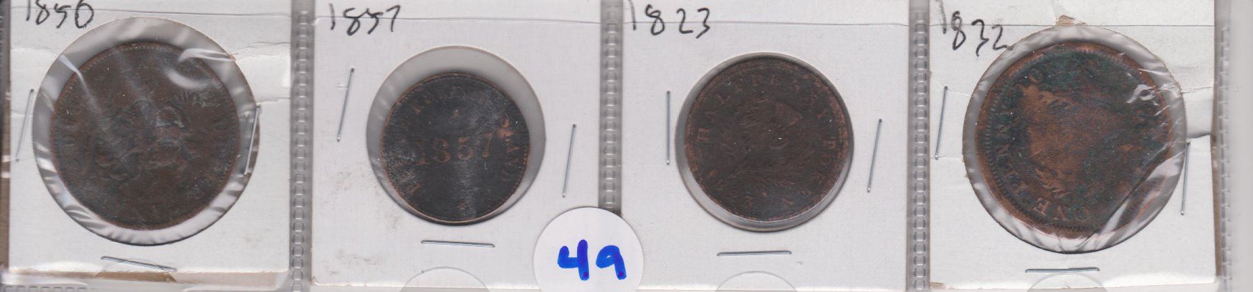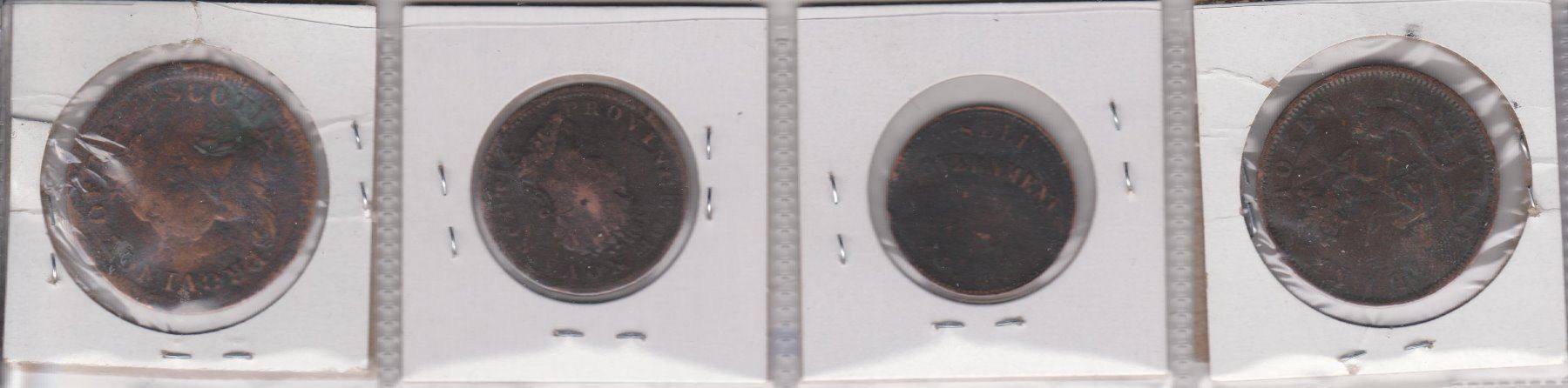 4 CANADIAN LARGE PENNIES 1822, 1823 NOVA SCOTIA, 1857 PEI, 1850 PENNY