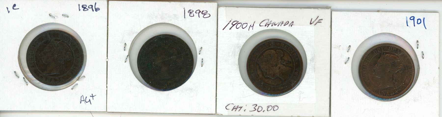 4 – CDN LGE CENTS 1896-AU,1898-F1900H-VF,1901-XF-AU