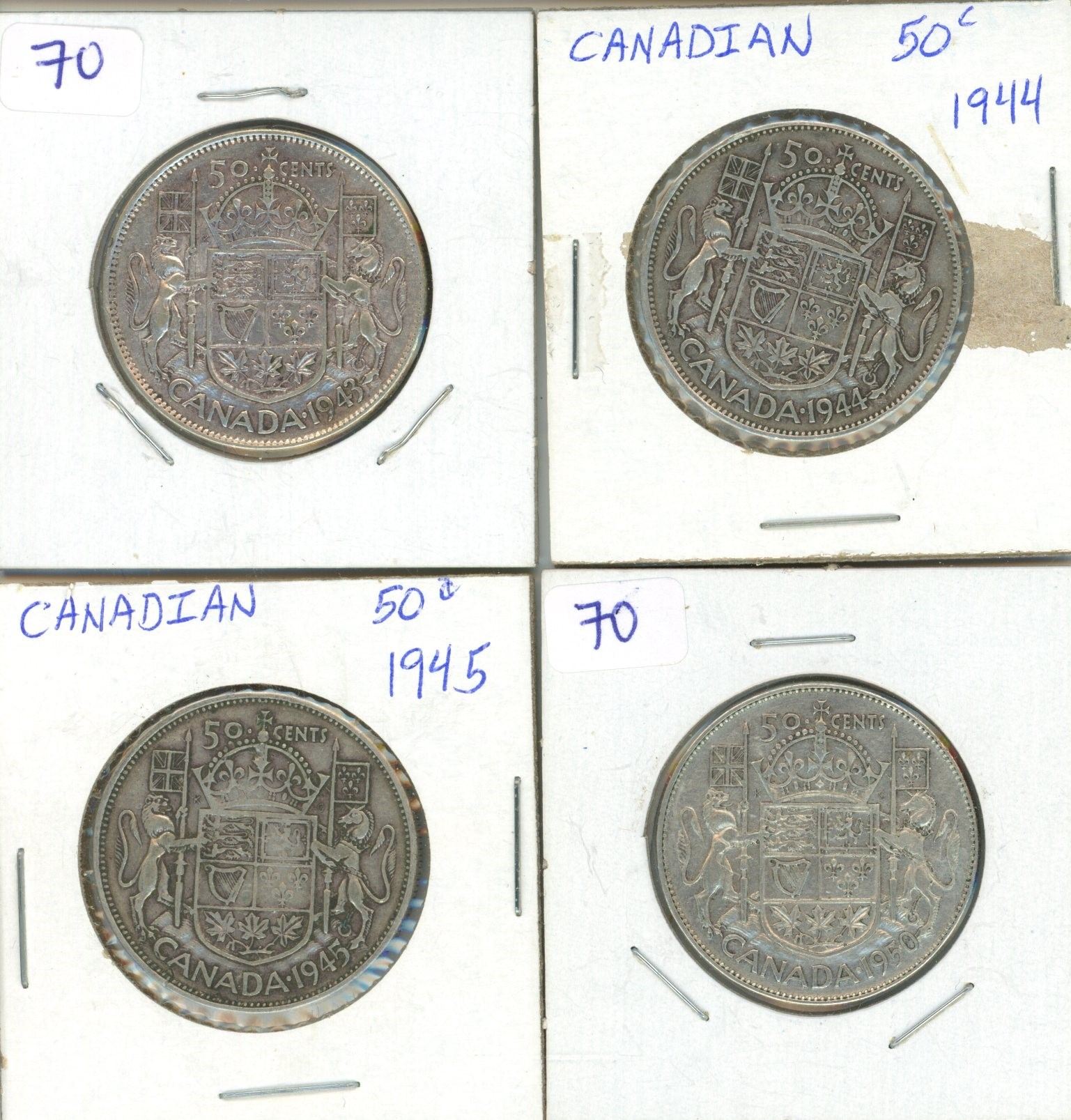 4 CDN Silver Haff Dollar 1943,44,45,50