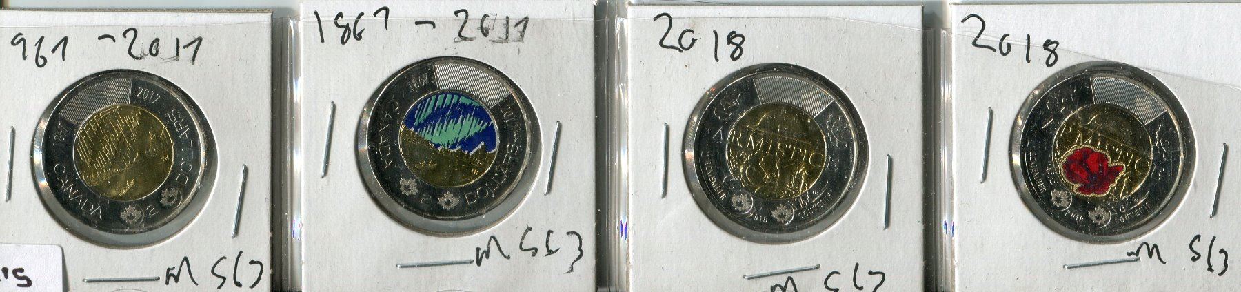 4 CNDN 2 DOLLAR COINS (1967 X 2, 2018 X 2)