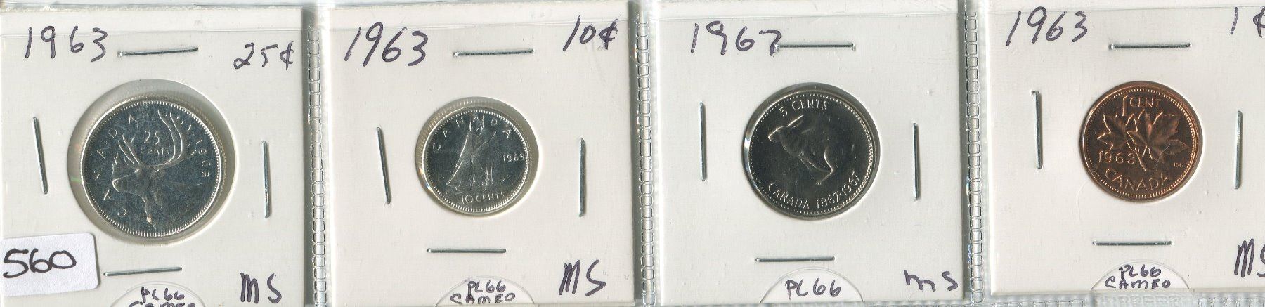 4 CNDN COINS 1963- 1 CENT PC, 10 CENT & 25 CENT PC, 1967- 5 CENT PC