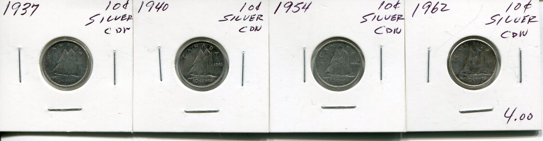 4 CNDN SILVER DIME 1937, 40, 54, 62