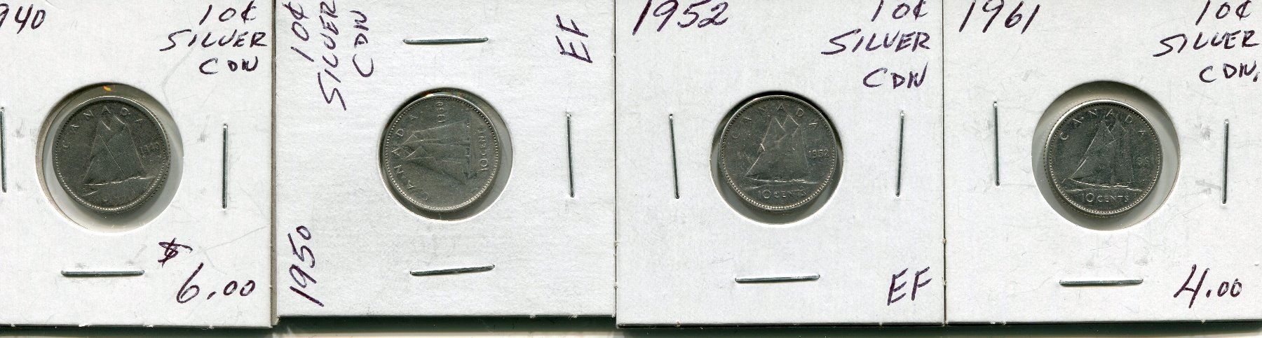 4 CNDN SILVER DIME 1940, 50, 52, 61