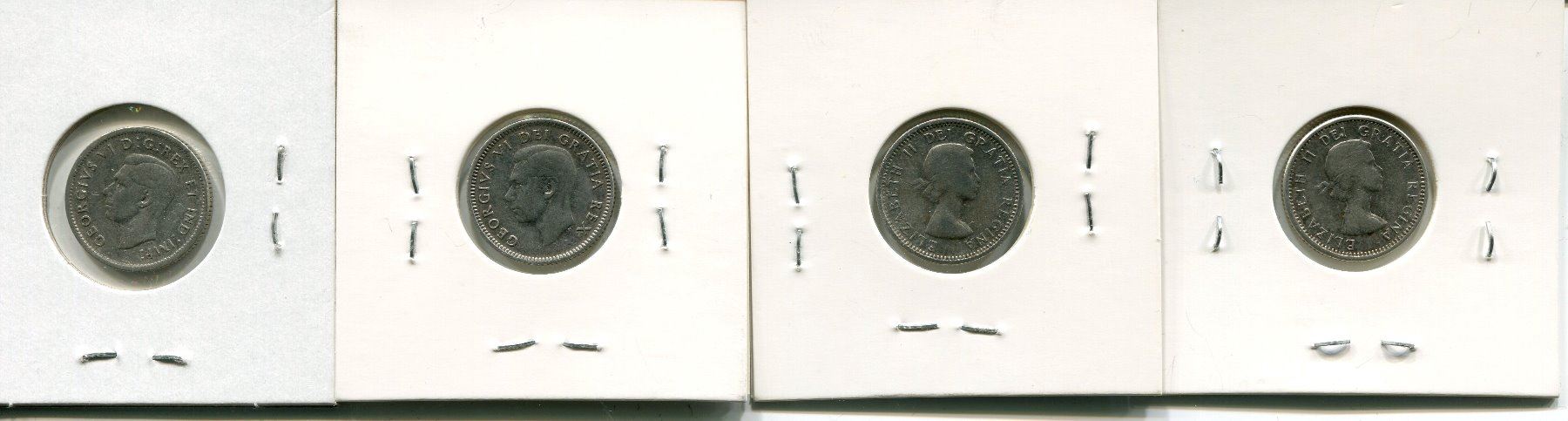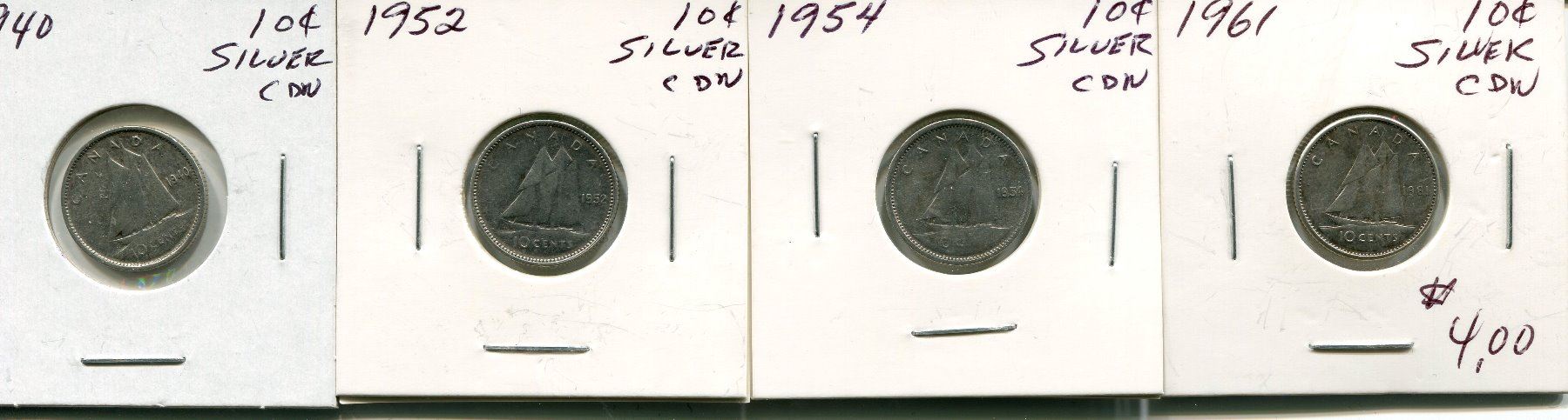 4 CNDN SILVER DIME 1940, 52, 54, 61