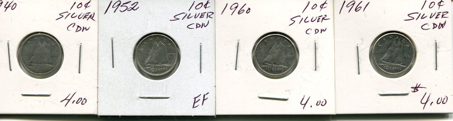 4 CNDN SILVER DIME 1940, 52, 60, 61