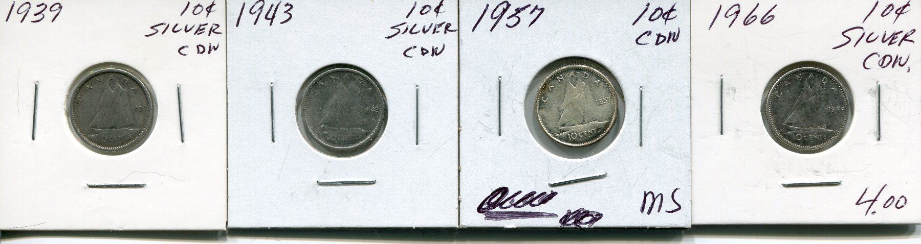 4 CNDN SILVER DIMES 1939, 43, 57, 66