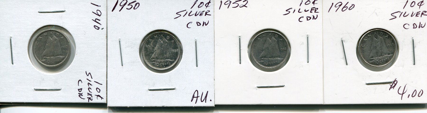 4 CNDN SILVER DIMES 1940, 50, 52, 60