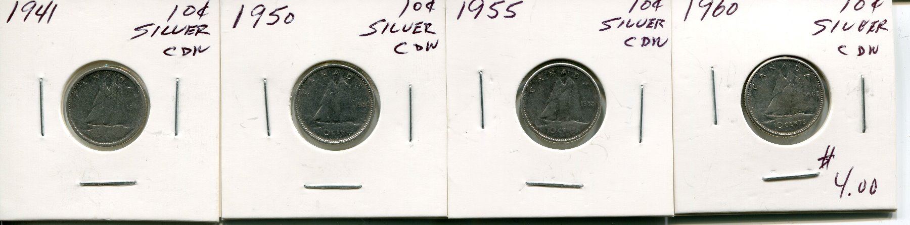 4 CNDN SILVER DIMES 1941, 50, 55, 60