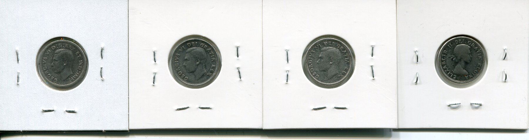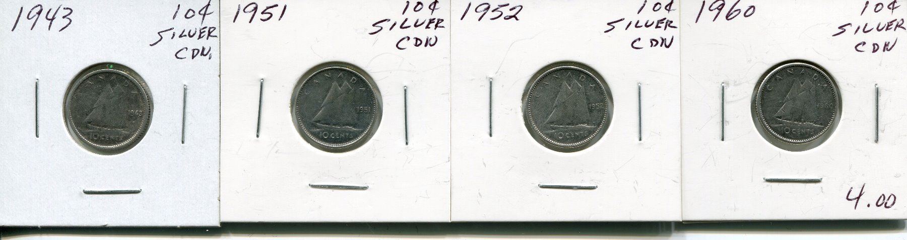 4 CNDN SILVER DIMES 1943, 51, 52, 60