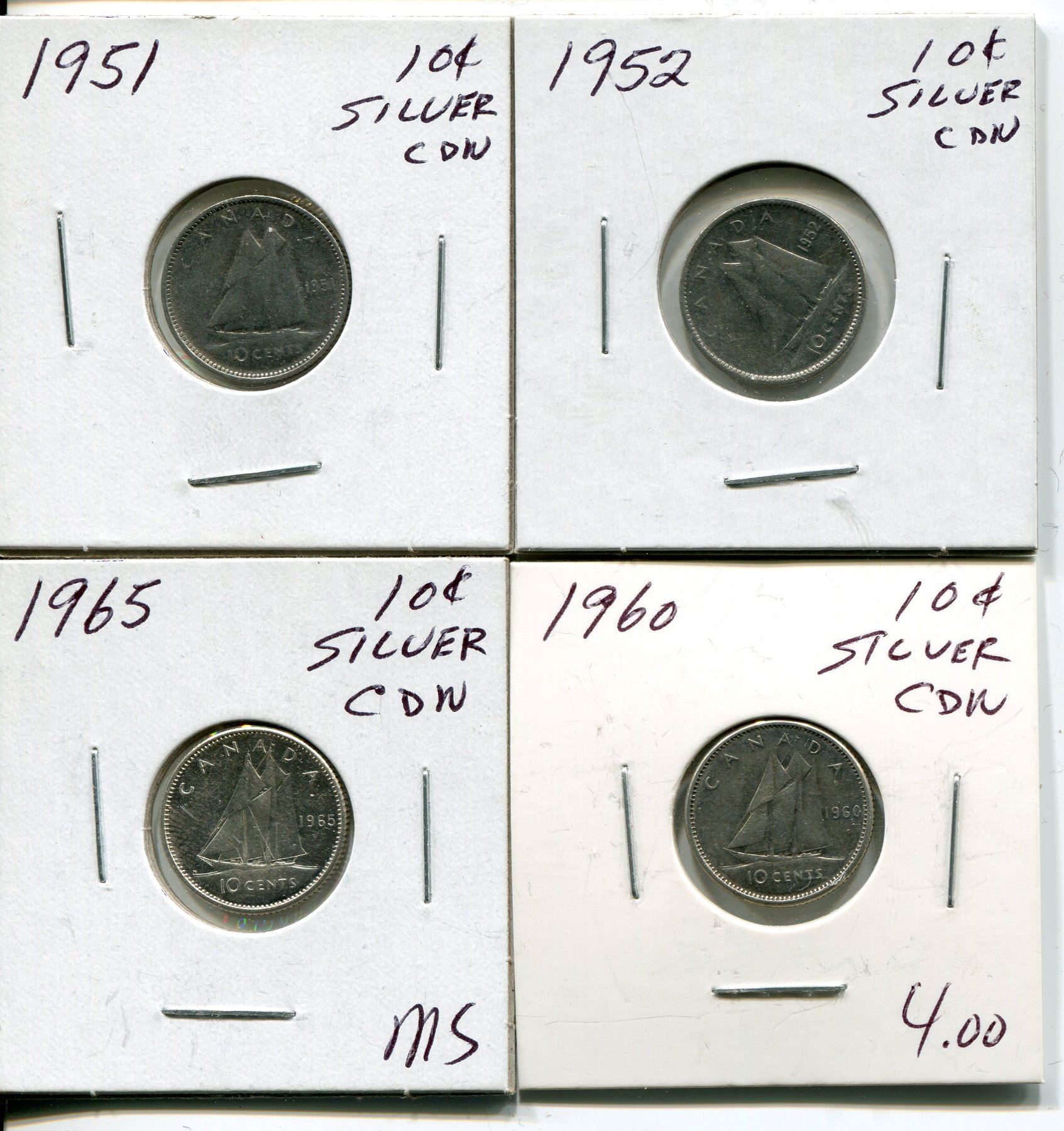 4 CNDN SILVER DIMES 1951, 52, 60, 65