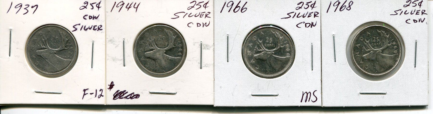 4 CNDN SILVER QUARTERS 1937, 44, 66, 68