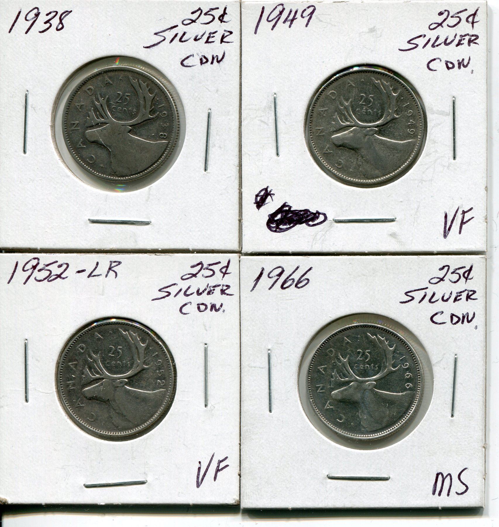 4 CNDN SILVER QUARTERS 1938, 49, 52, 66